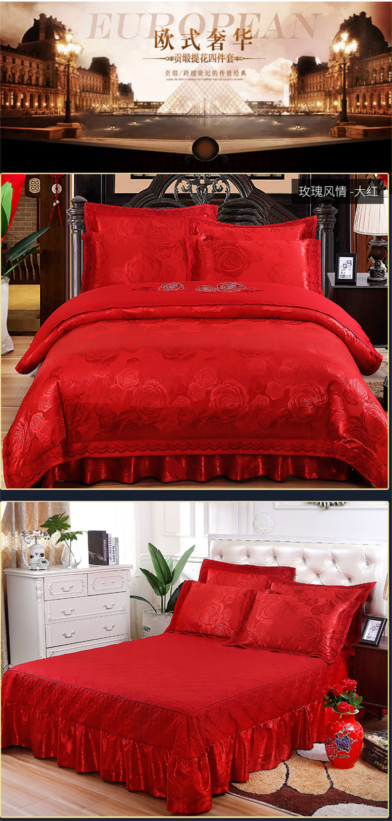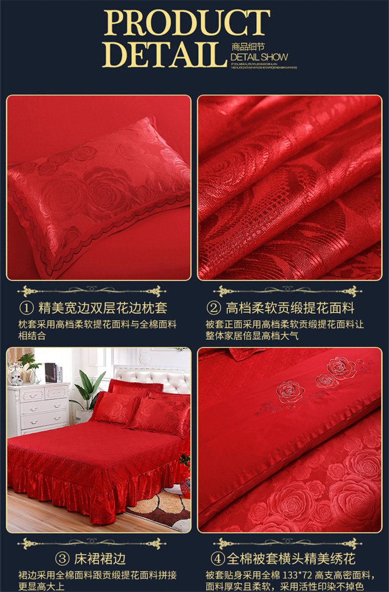 福丽莱家纺 2023新款贡缎提花床裙四件套(夹棉)玫瑰风情-大红