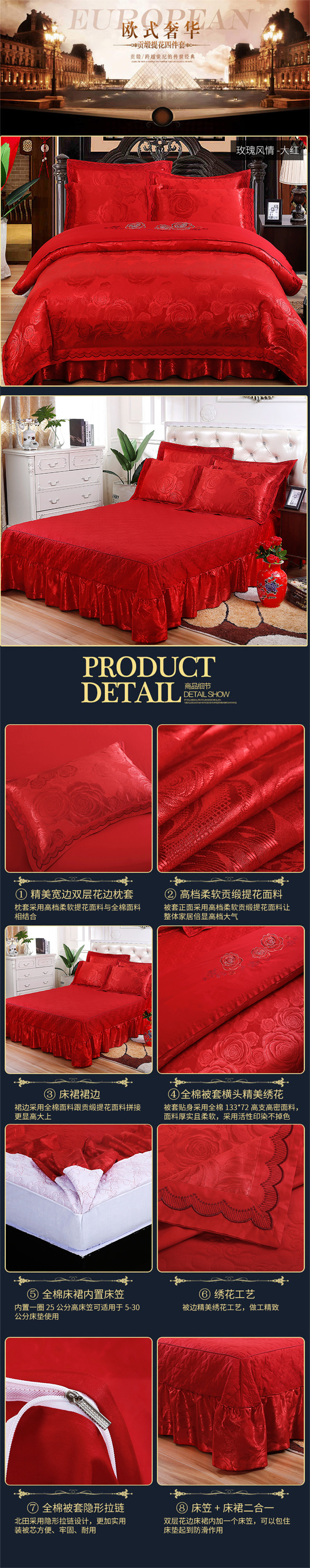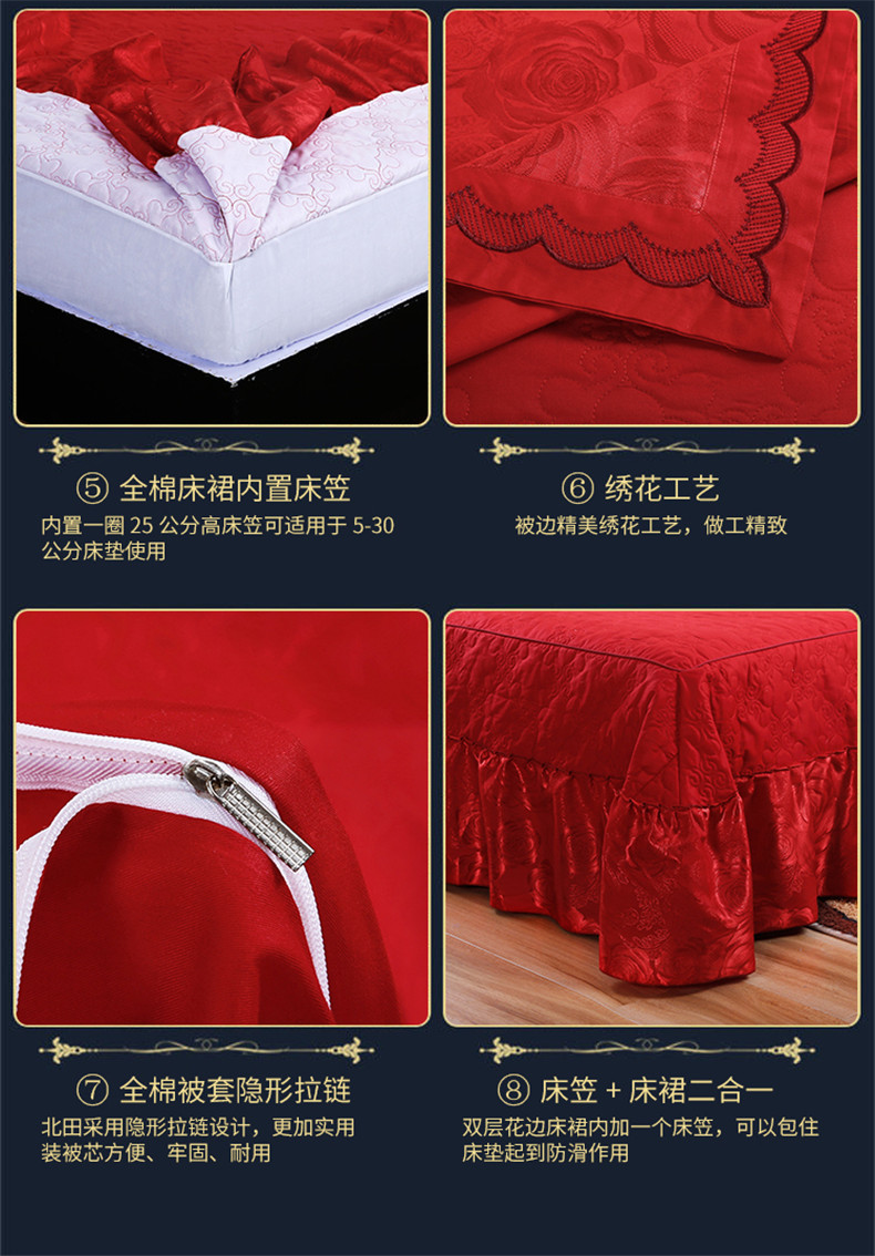 商品名称:福丽莱家纺 2023新款贡缎提花床裙四件套(夹棉)玫瑰风情-大红