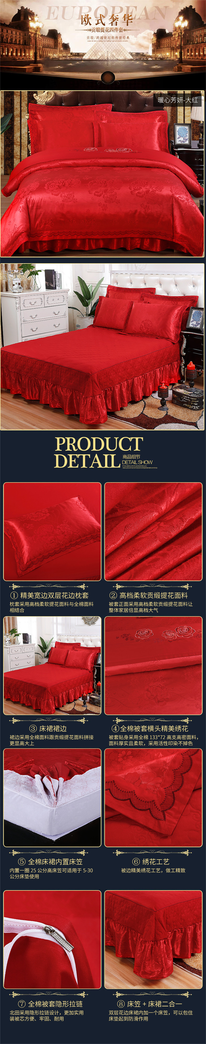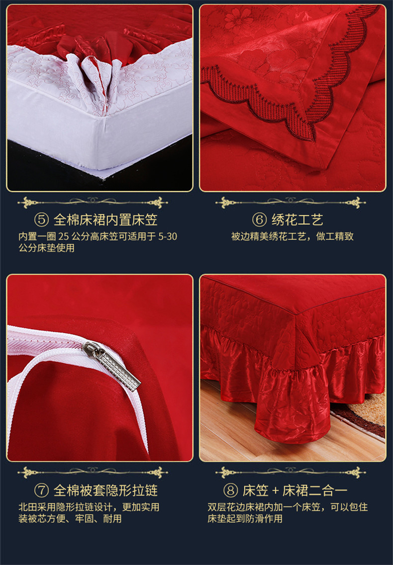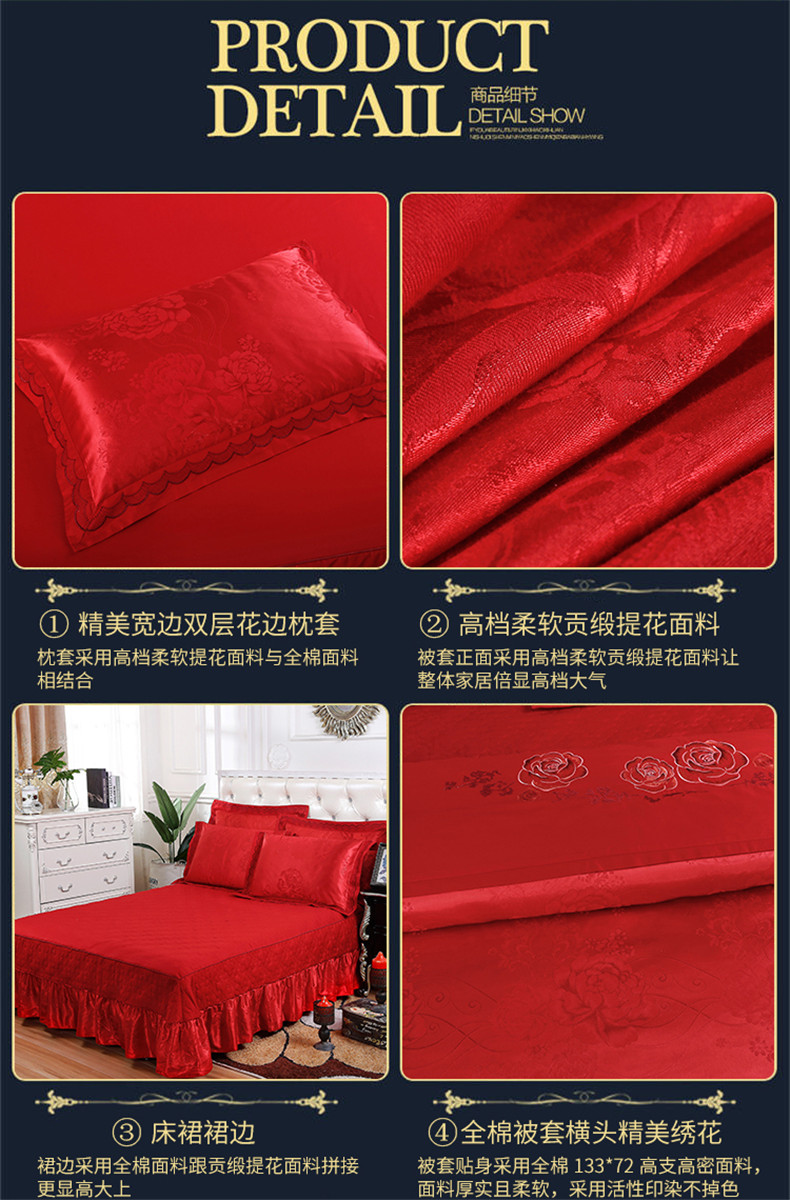 商品名称:福丽莱家纺 2023新款贡缎提花床裙四件套(夹棉)暖心芳妍-大红