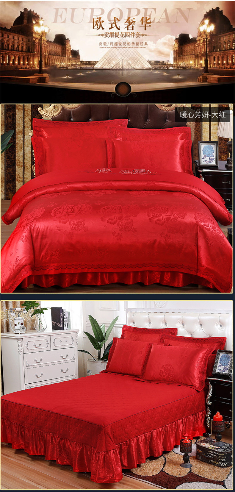 (总) 福丽莱家纺 2019贡缎提花床裙四件套(单层),黛香-豆沙,典范欧风-蓝灰,菲洛嘉,国色佳人,花团锦簇-银灰,花团锦簇-粉玉,玛格丽特-金兰,玫瑰风情-大红,摩卡庄园-紫驼,暖心芳妍-大红,浅芳菲-粉紫,喜上眉梢-砖红,仙境青色