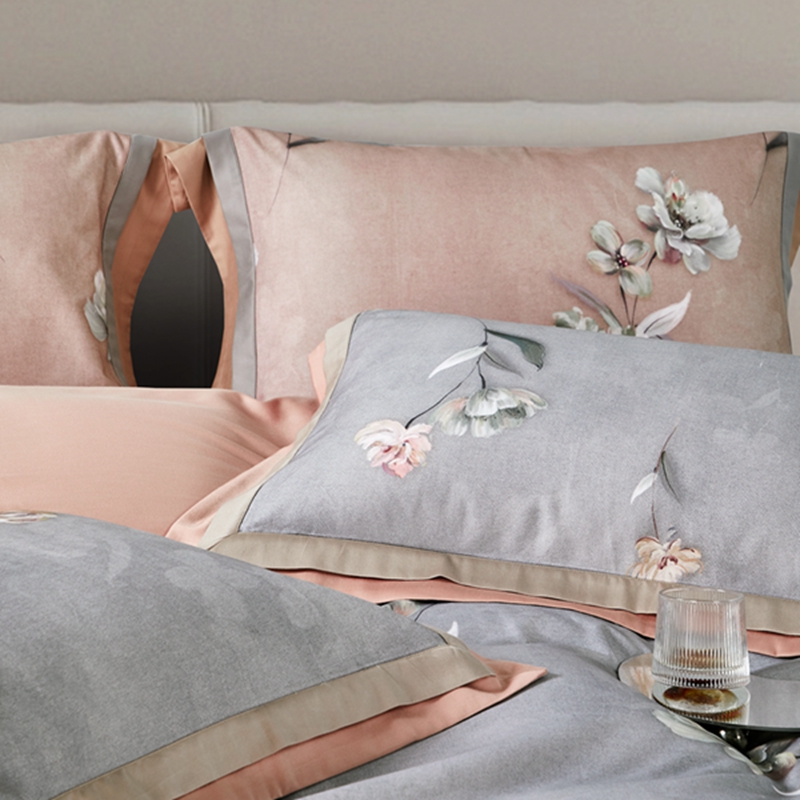 (总)榻尚家居 2023新款纯棉贡缎提花四件套(会员-10),缤兰,烟粉