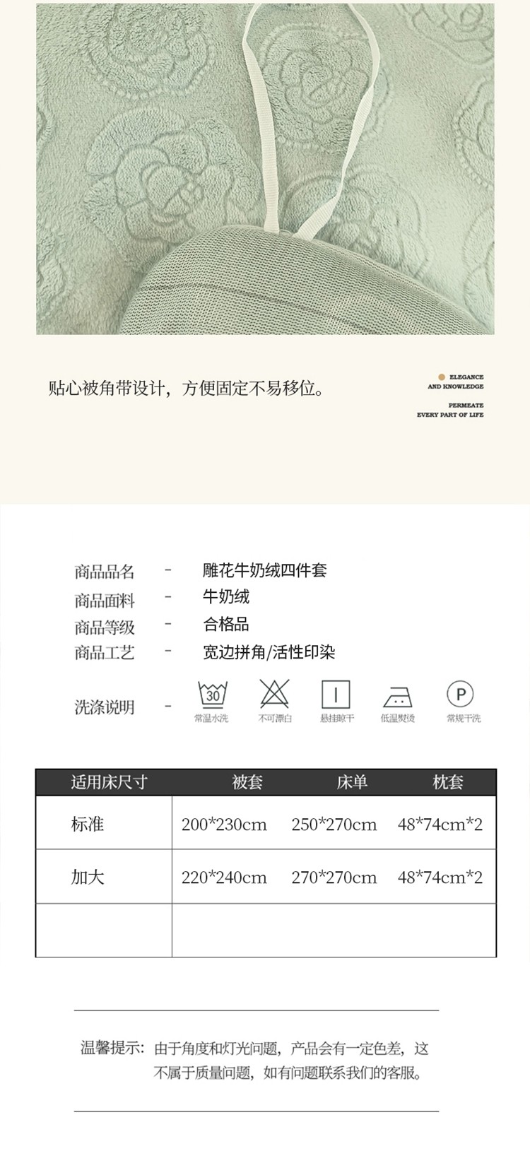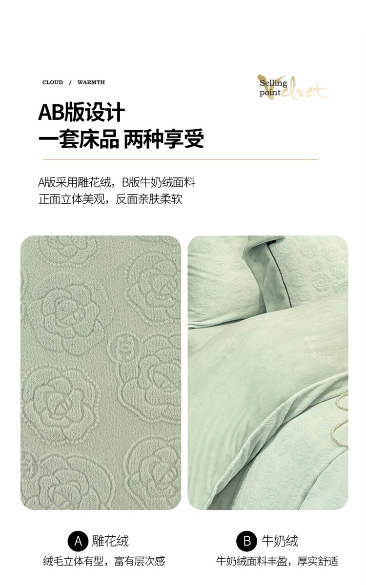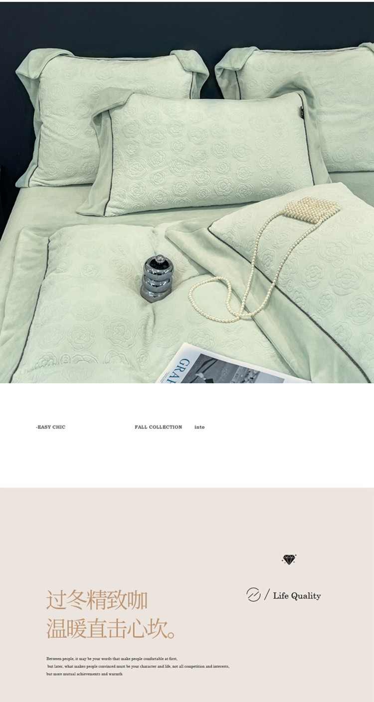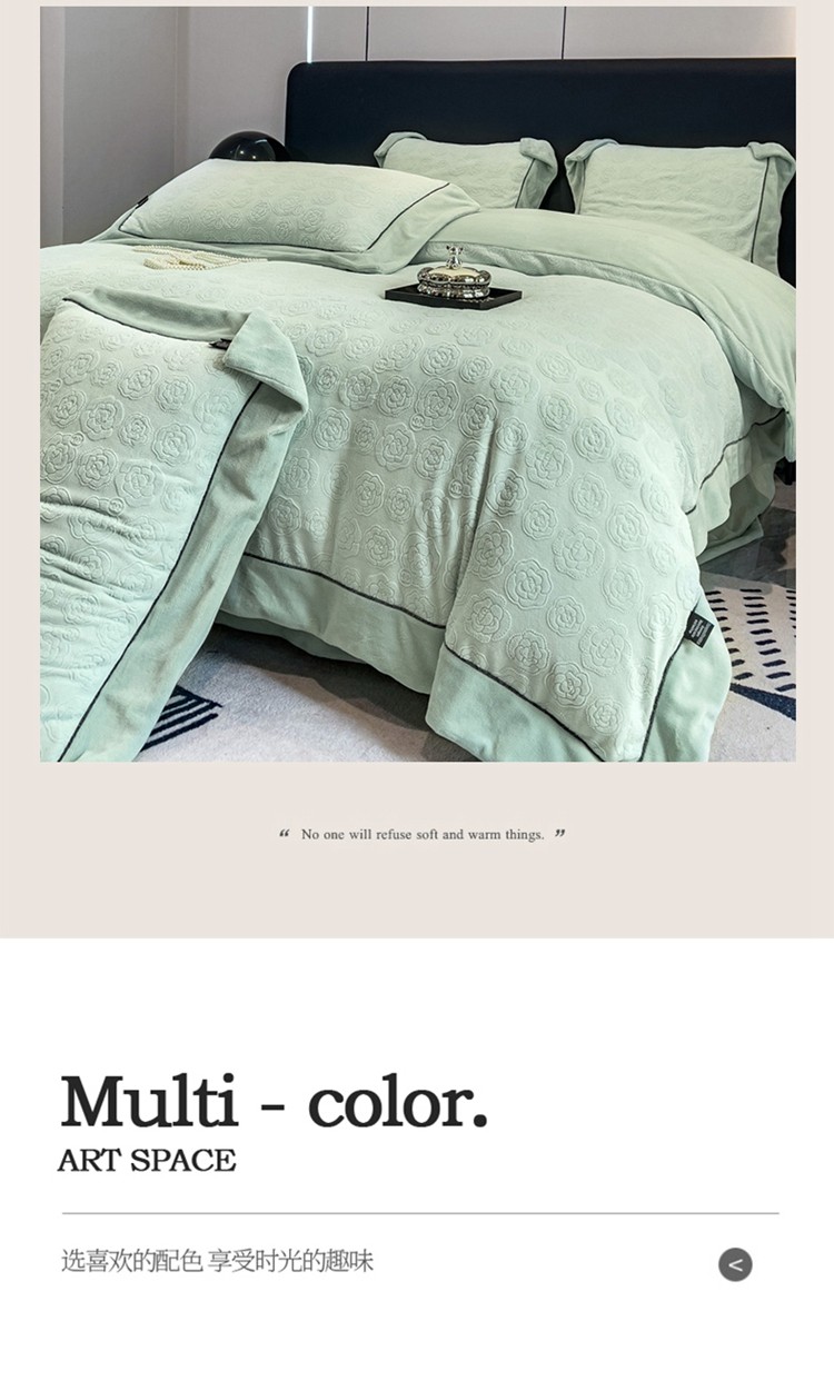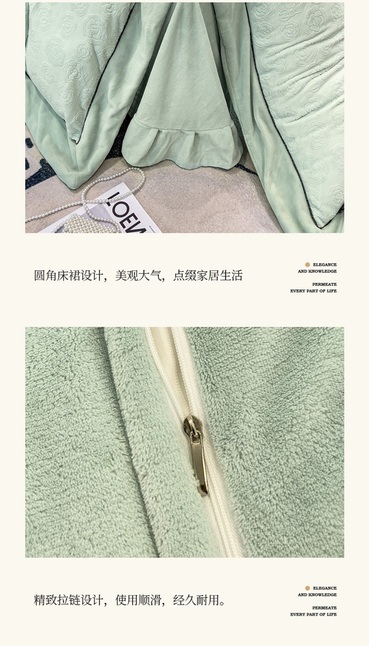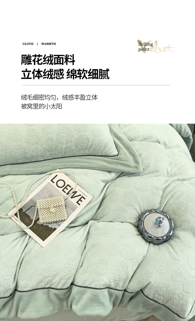 商品名称:2025新款牛奶绒雕花四件套-小香 水绿色