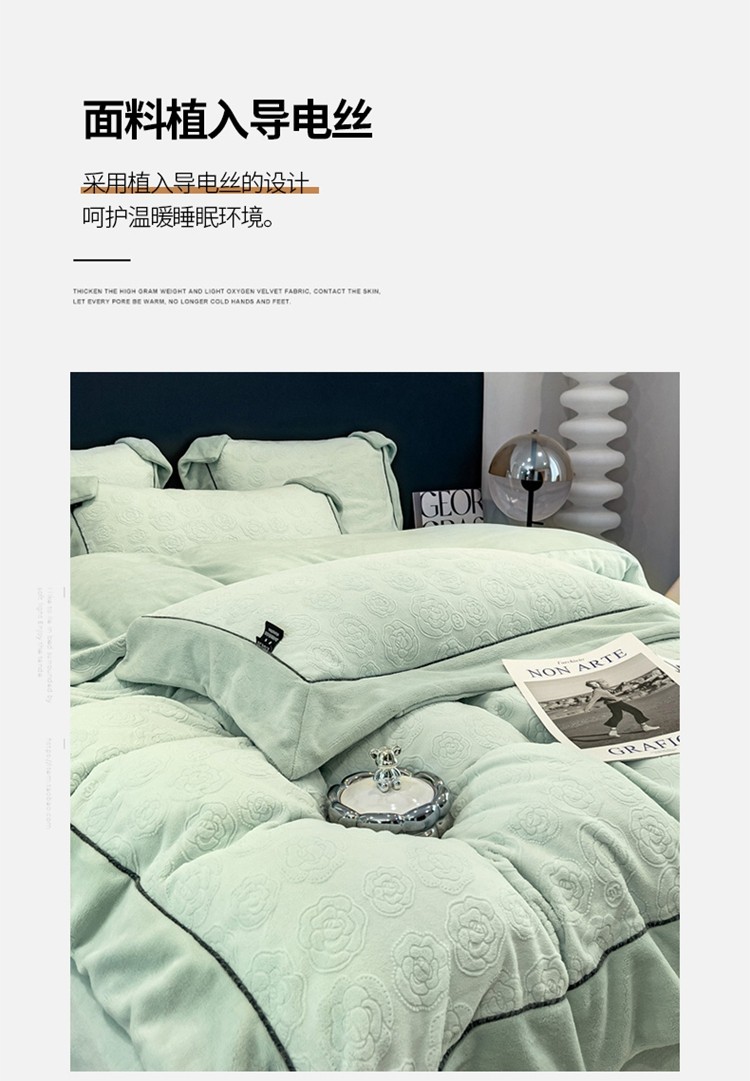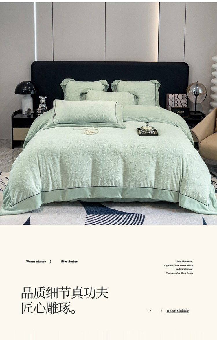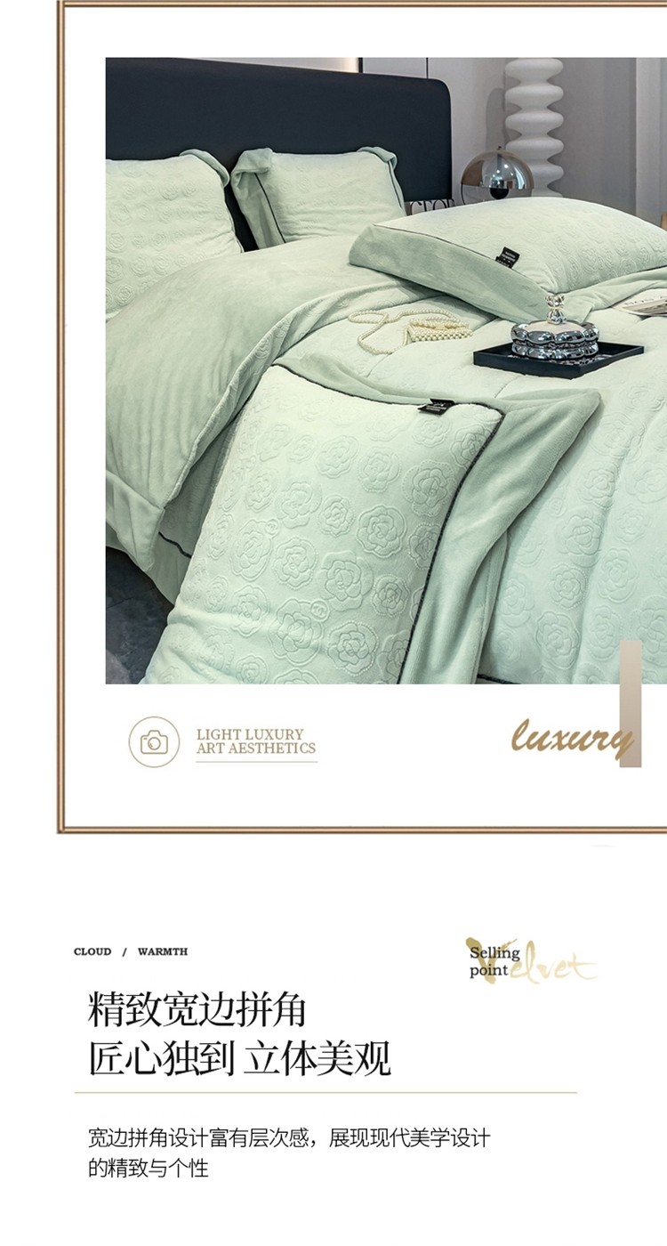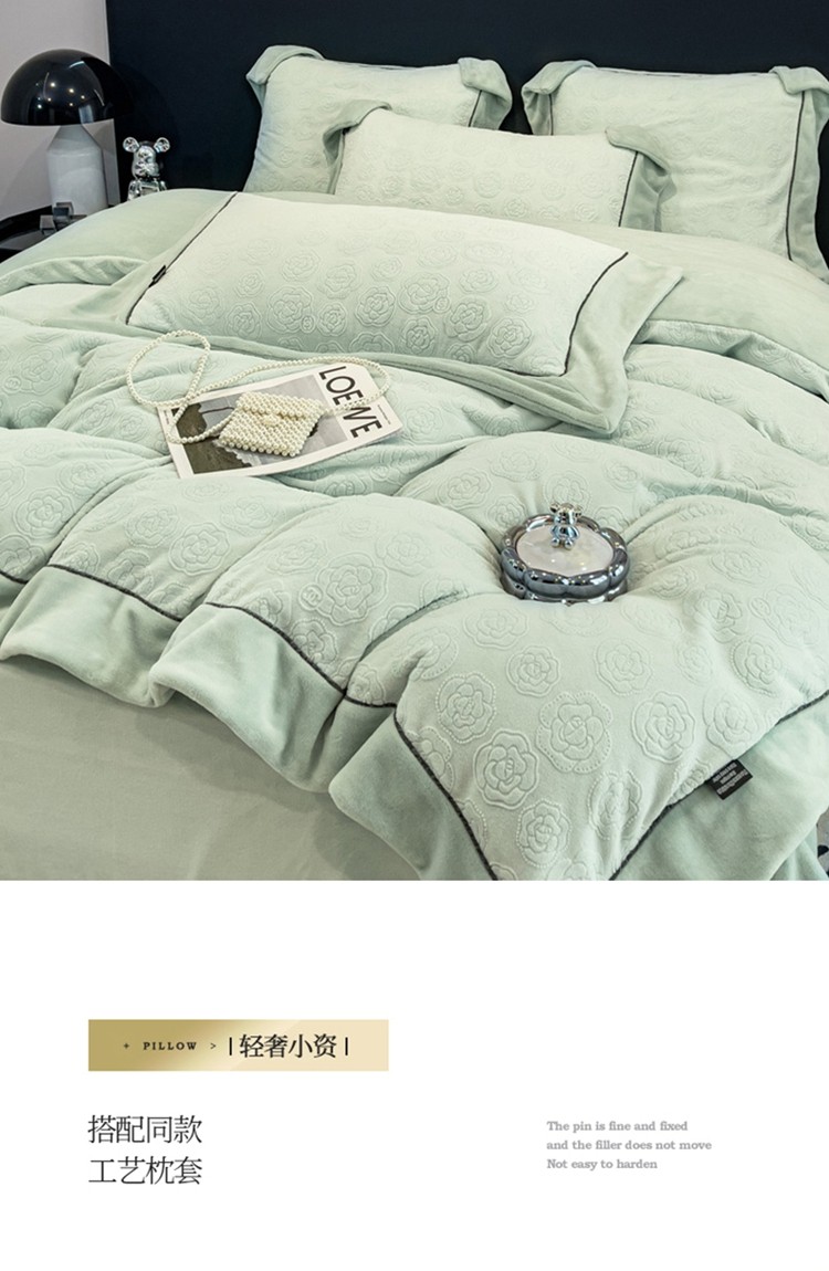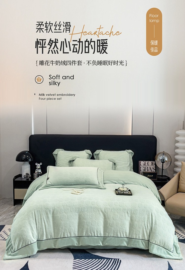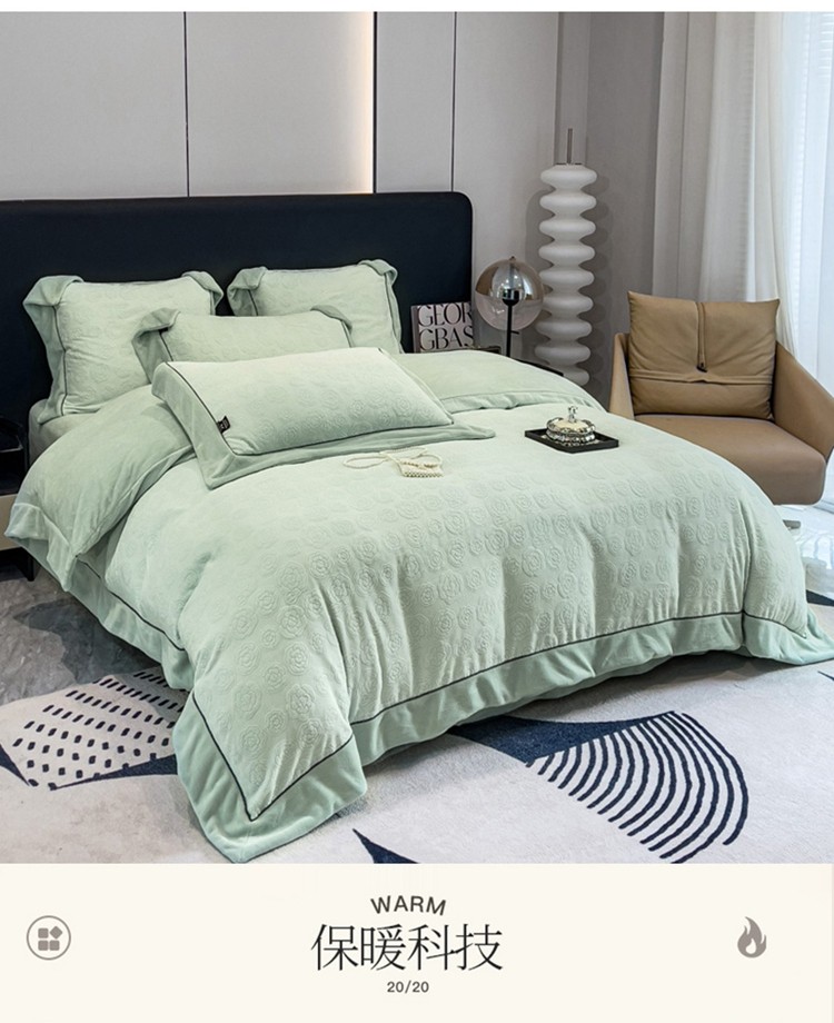 2025新款牛奶绒雕花四件套-小香 水绿色