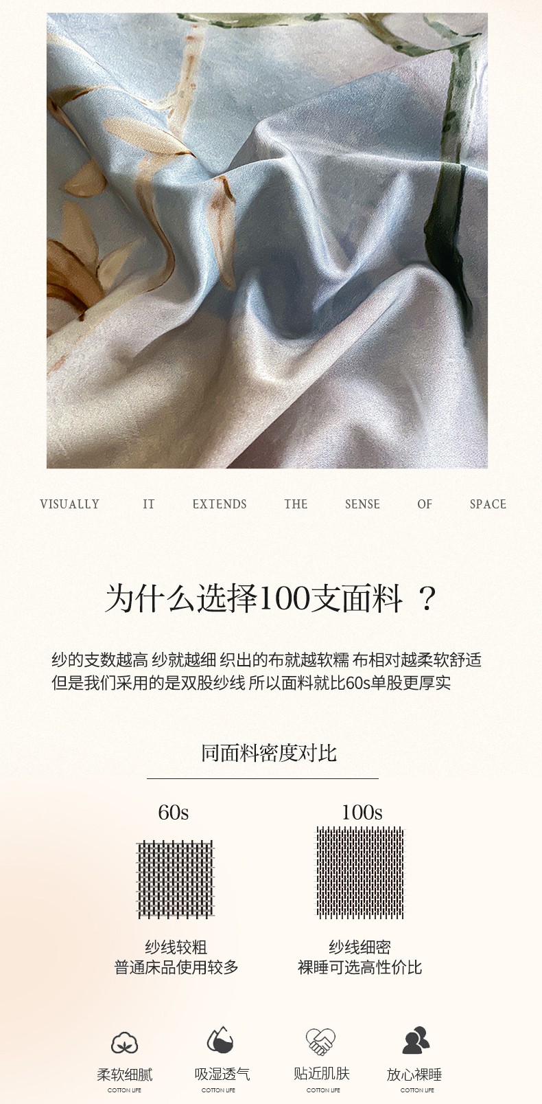 娇逸 100支新疆长绒棉数码印花全棉四件套(专版花型) 雾韵
