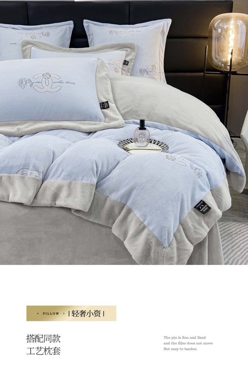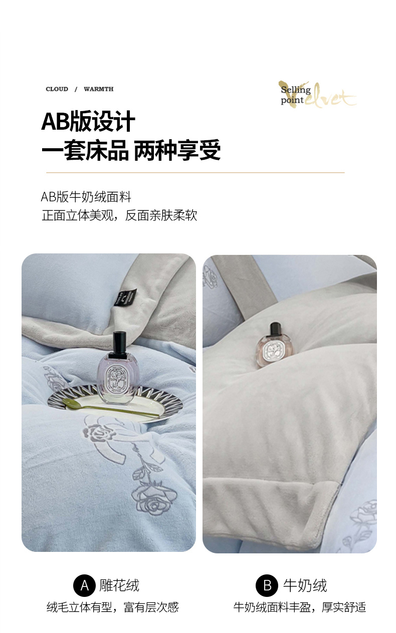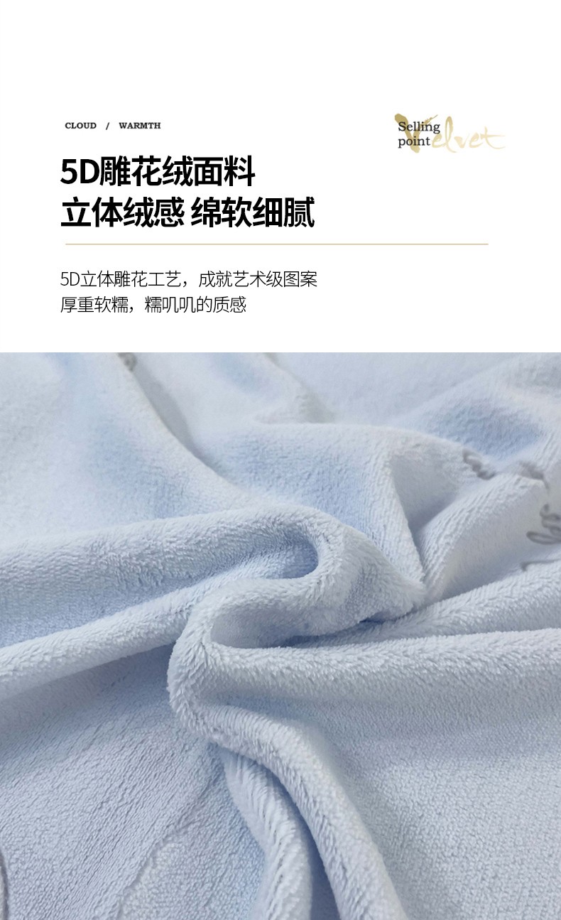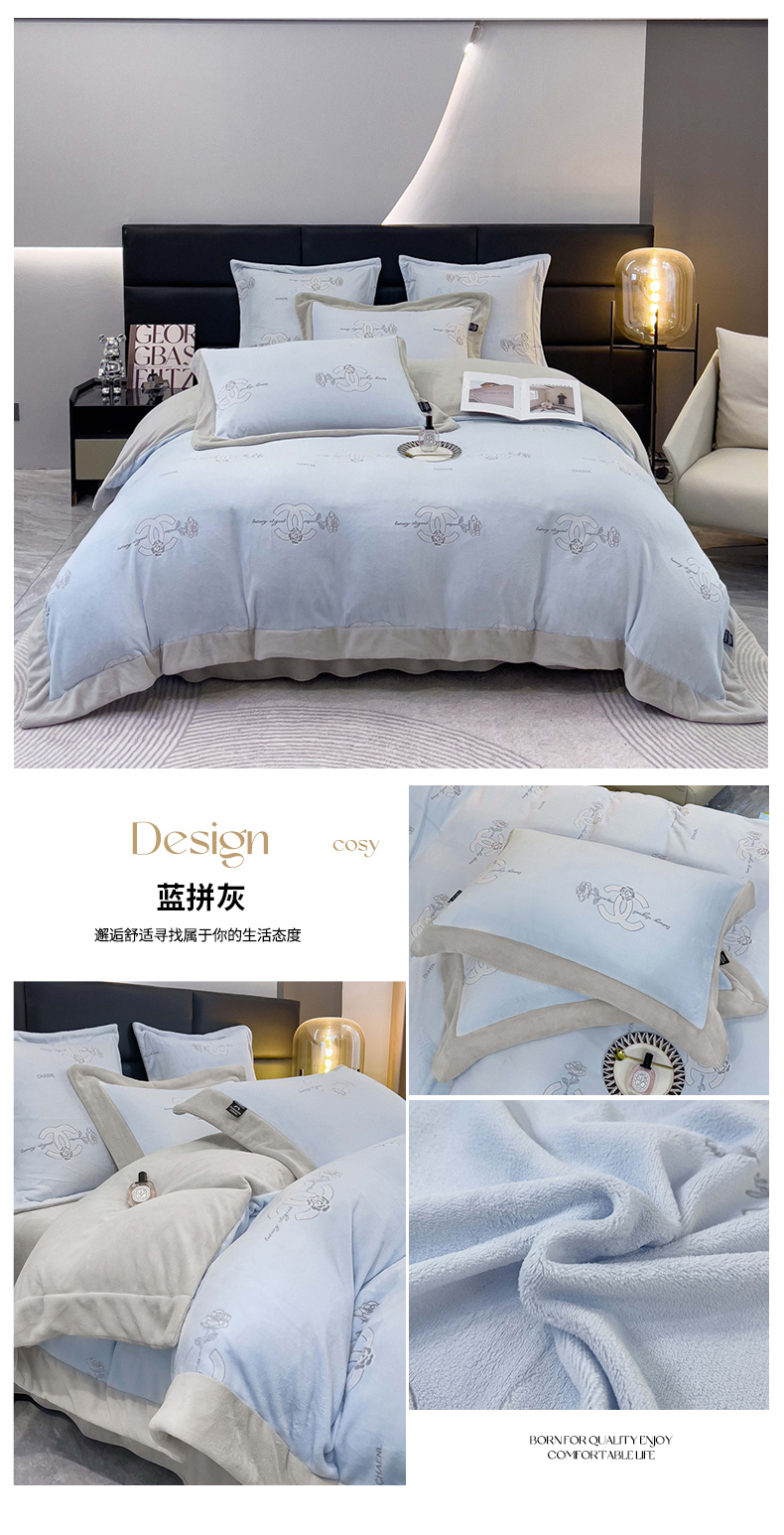 商品名称:品家居 2025新款5D雕花牛奶绒四件套-心动玫瑰 蓝拼灰