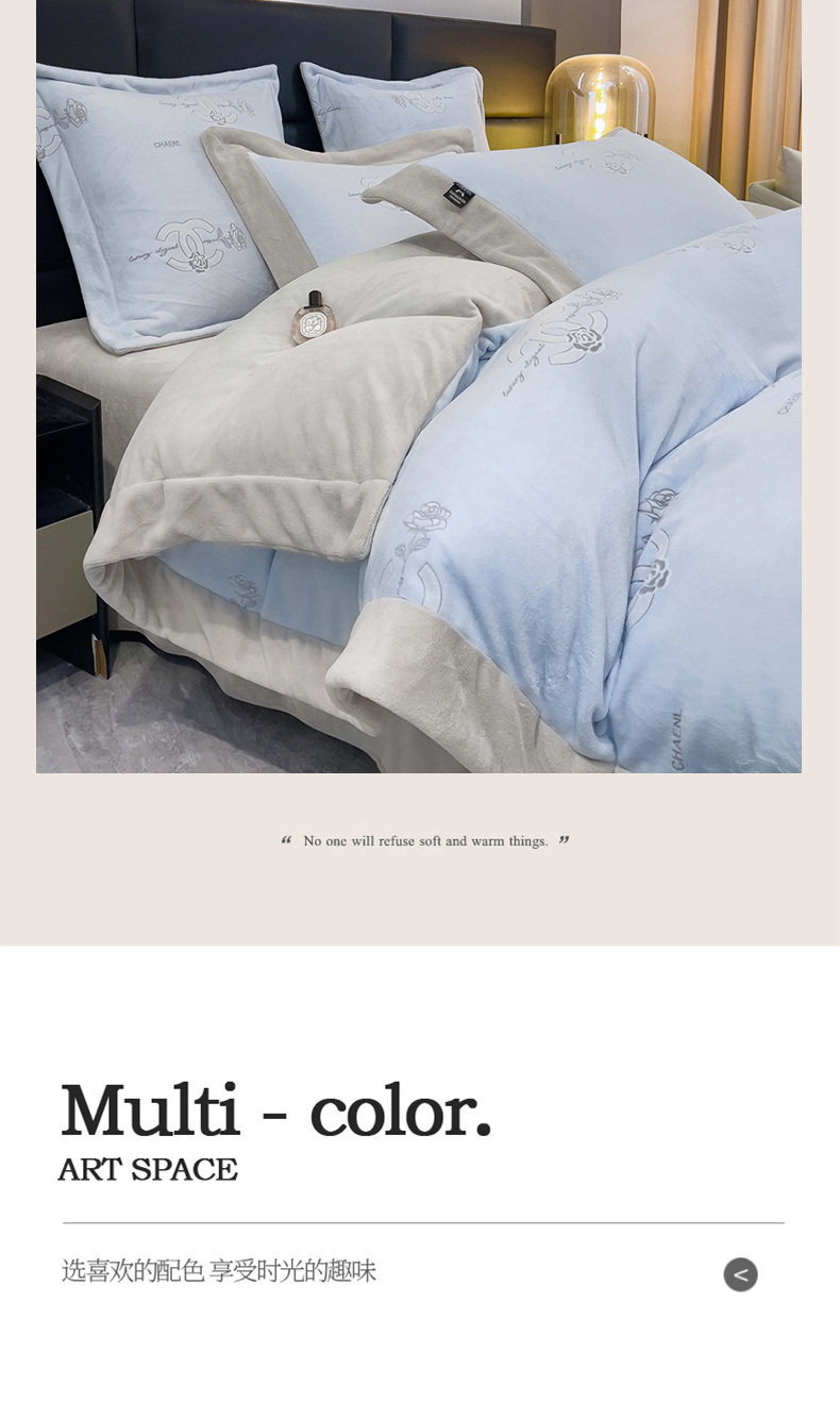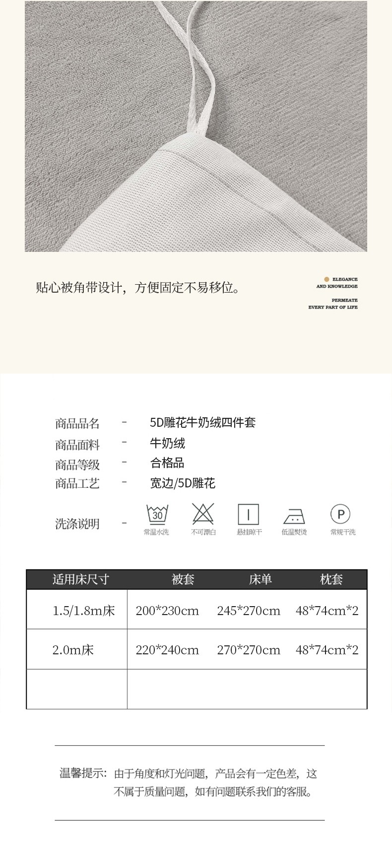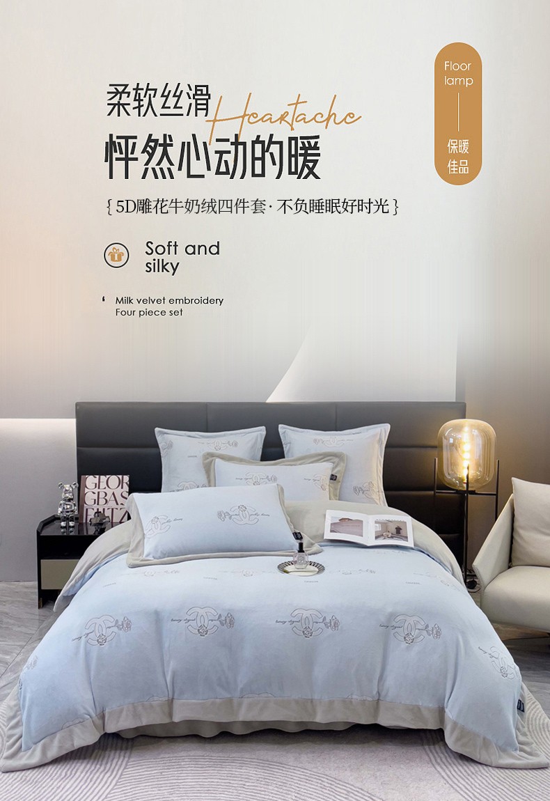 (总) 品家居 2025新款5D雕花牛奶绒四件套-心动玫瑰,粉拼灰,黄拼灰,蓝拼灰