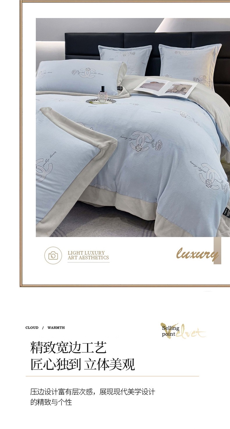 (总)品家居 2025新款5D雕花牛奶绒绣花大拼角四件套-岁月静好,粉色,蓝色,秋黄