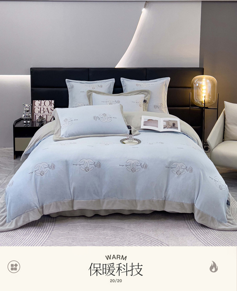 (总)品家居 2025新款AB版高克重兔绒牛奶绒四件套-花颂,花颂-粉色,花颂-灰色