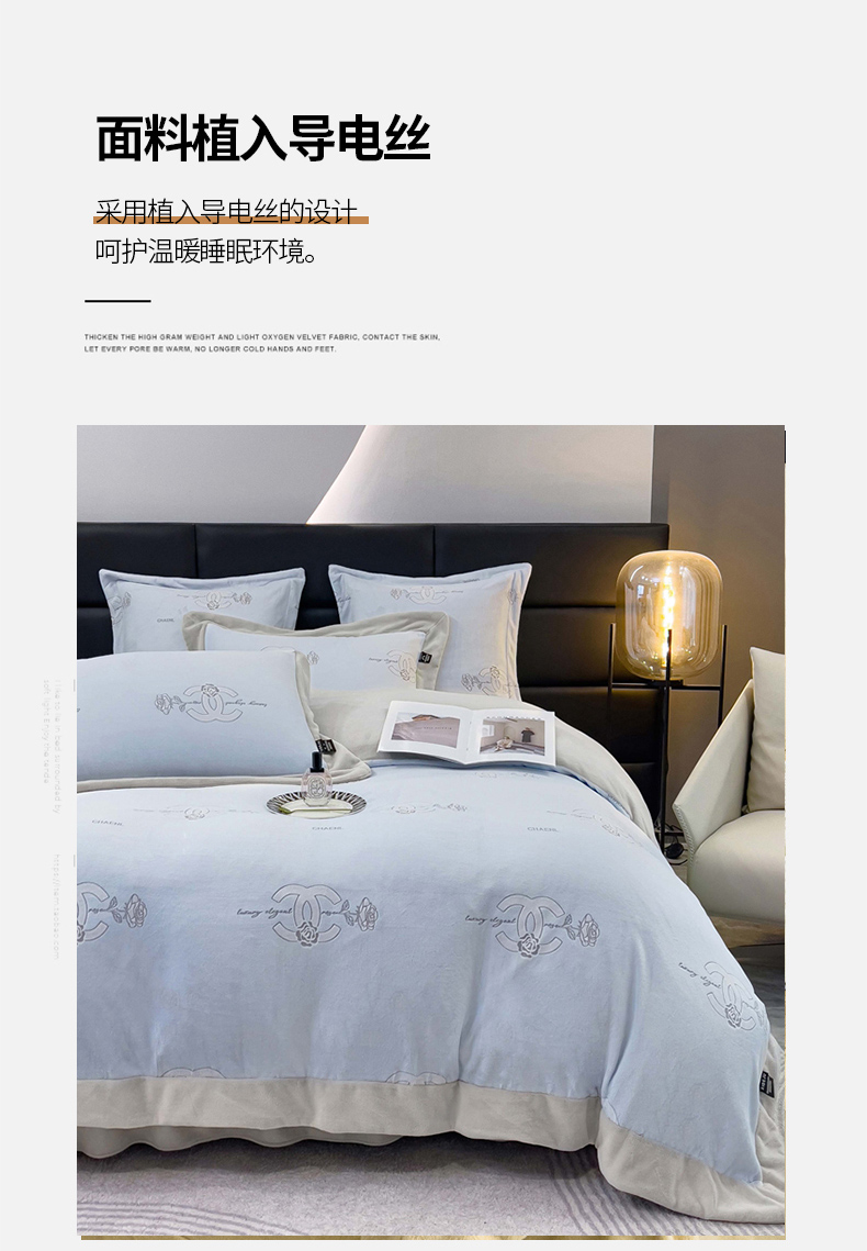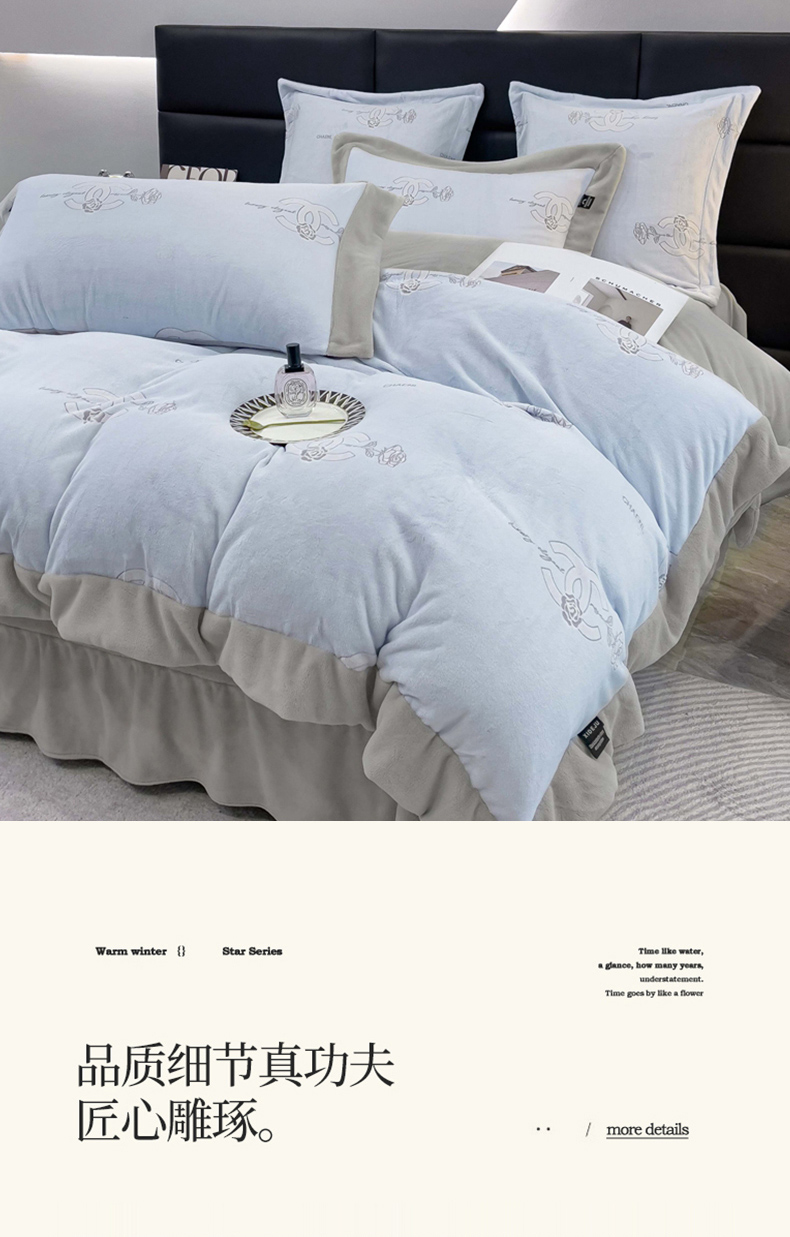 品家居 2025新款5D雕花牛奶绒四件套-心动玫瑰 蓝拼灰