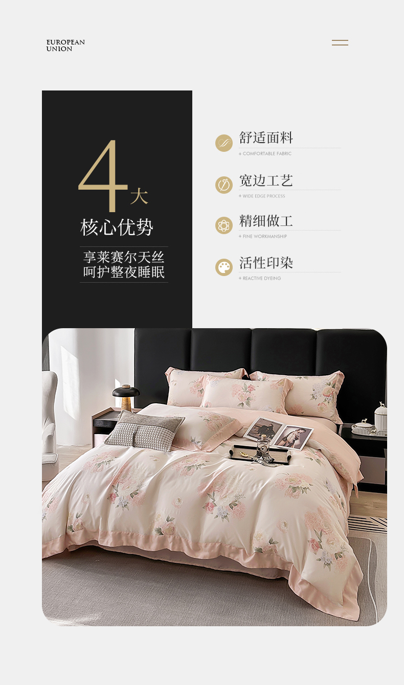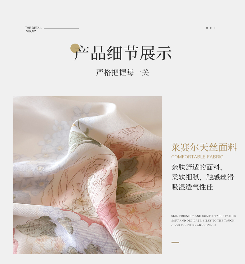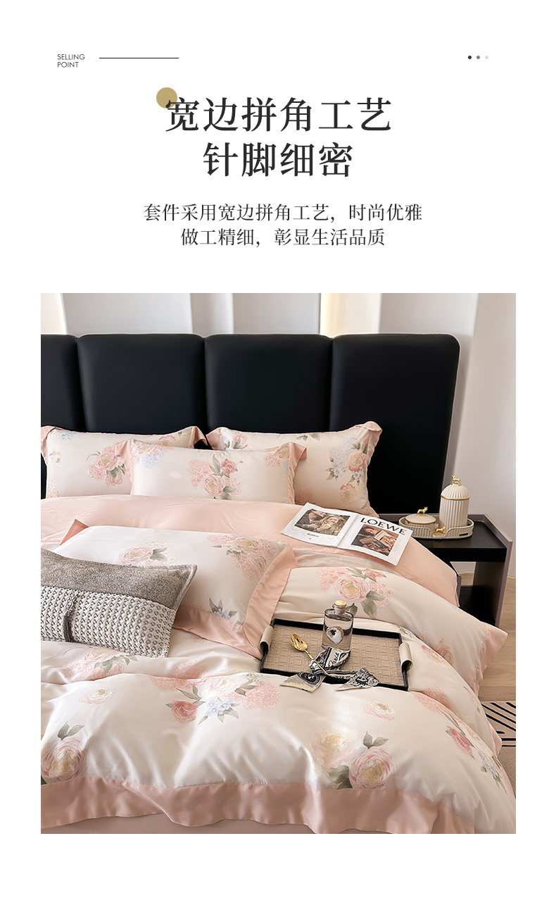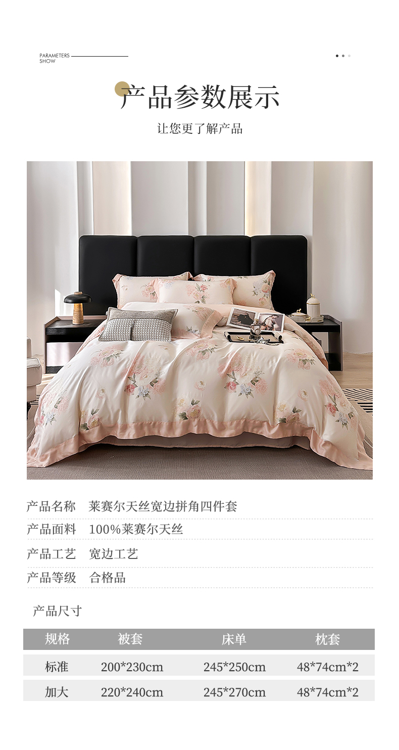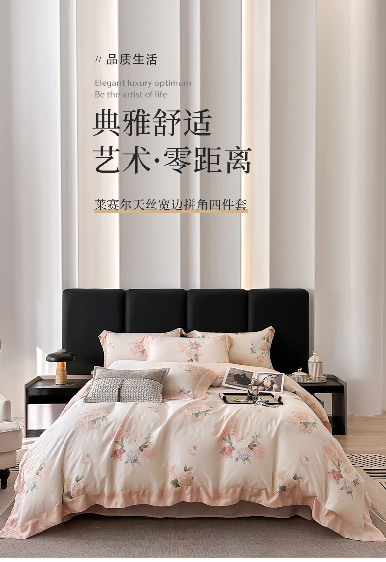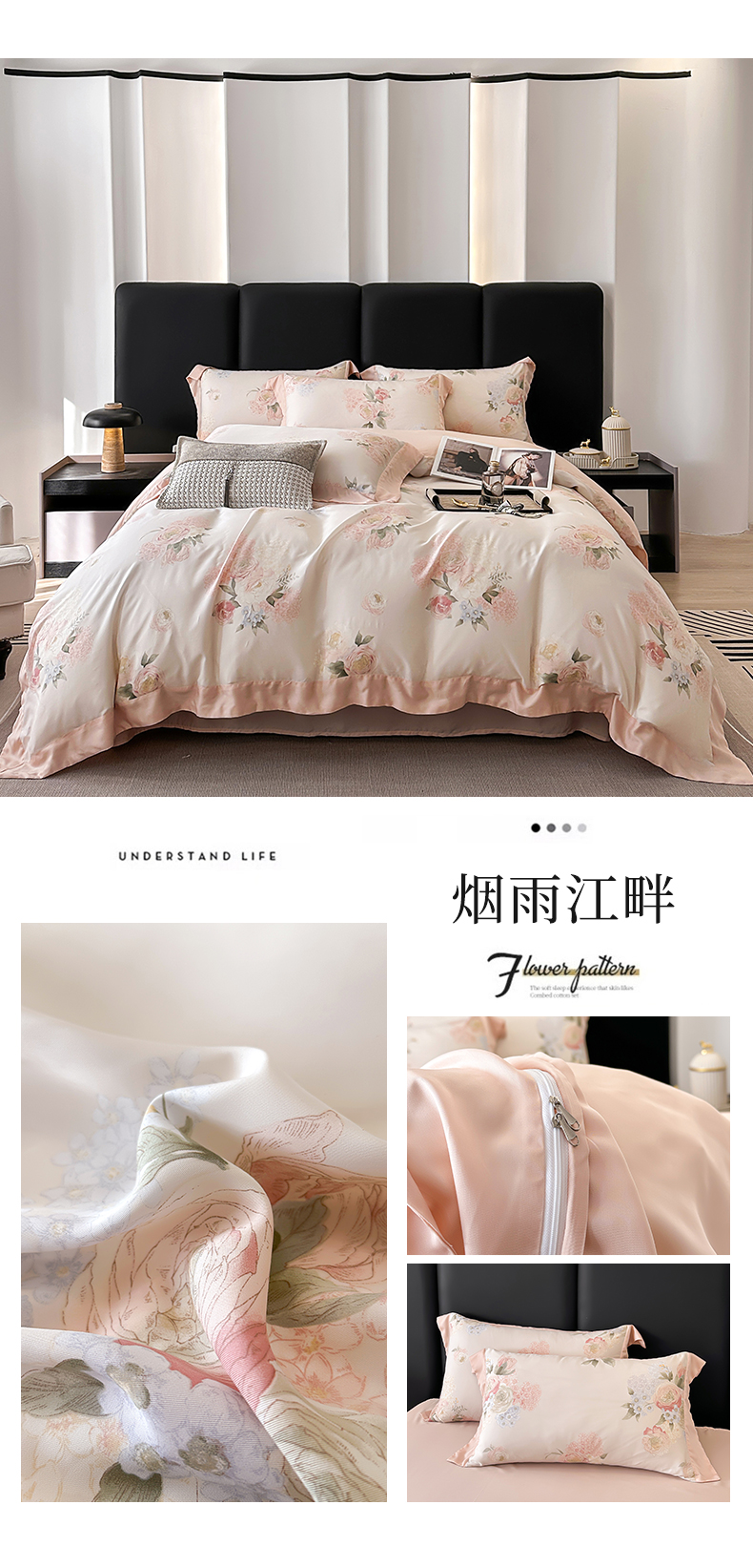 娇逸家居 2025新款50支莱赛尔数码印花宽边拼角天丝四件套(可搭配同系列夏被和床盖) 烟雨江南