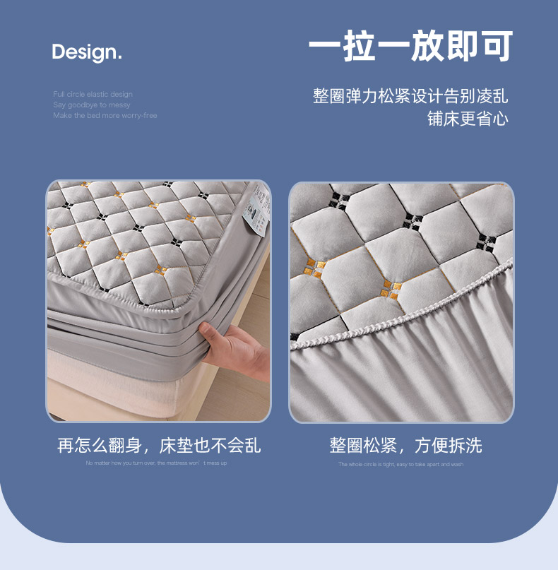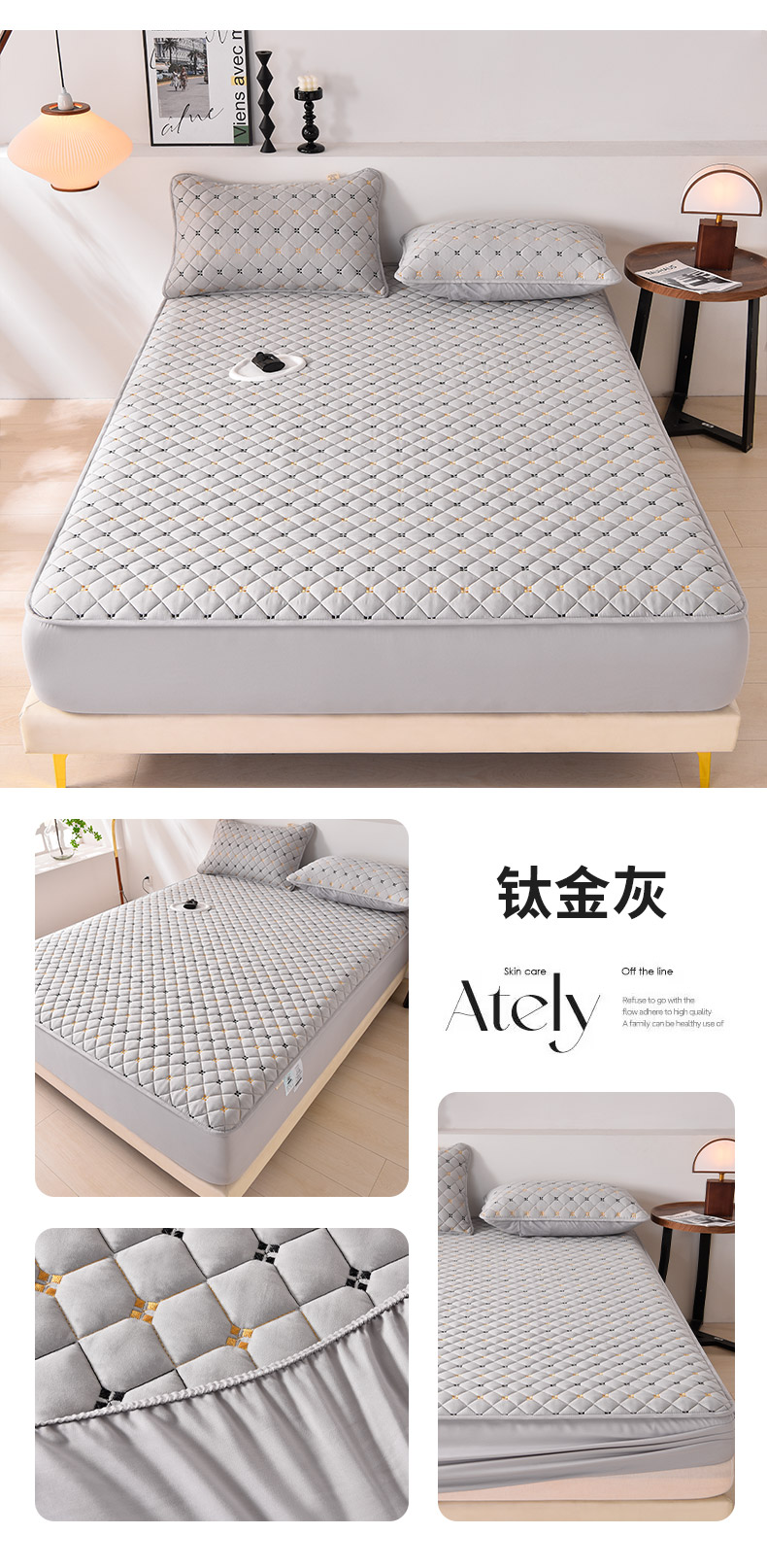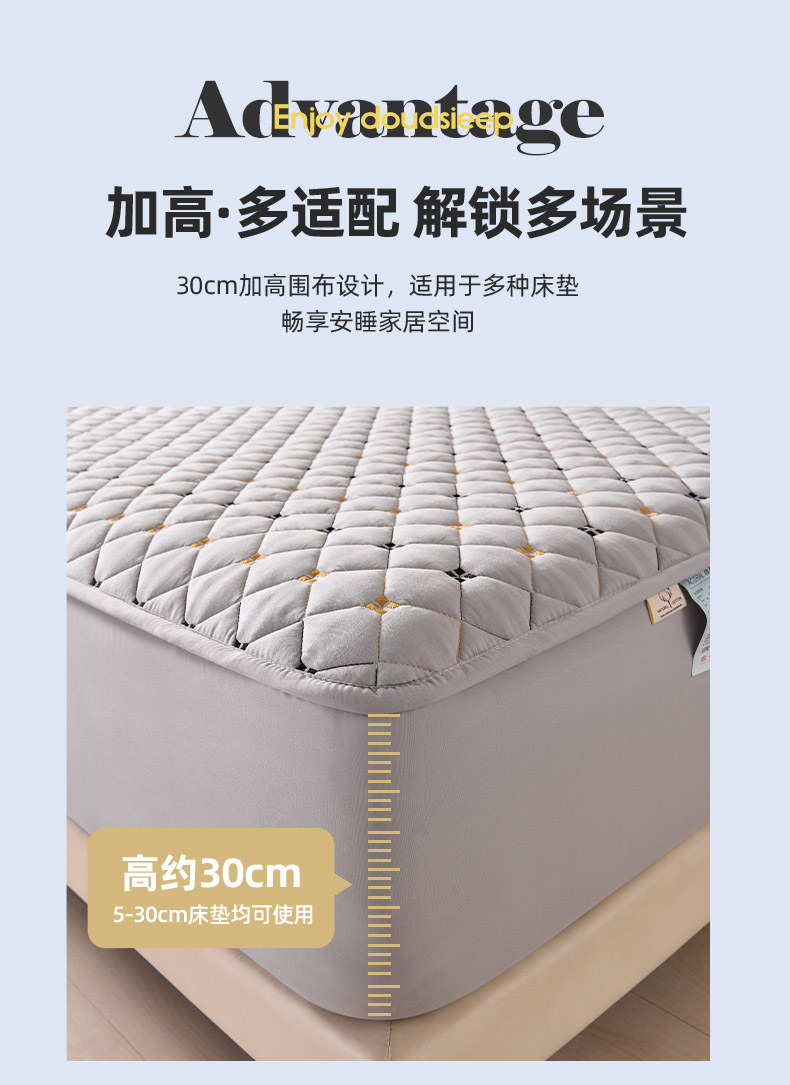 • 91家纺网 家纺一手货源 找家纺 (总)好眠好梦家纺 2025新款全棉50S抗菌防螨夹棉防水床笠-无限之光系列,白色,粉色,卡其,深灰,天蓝,烟灰