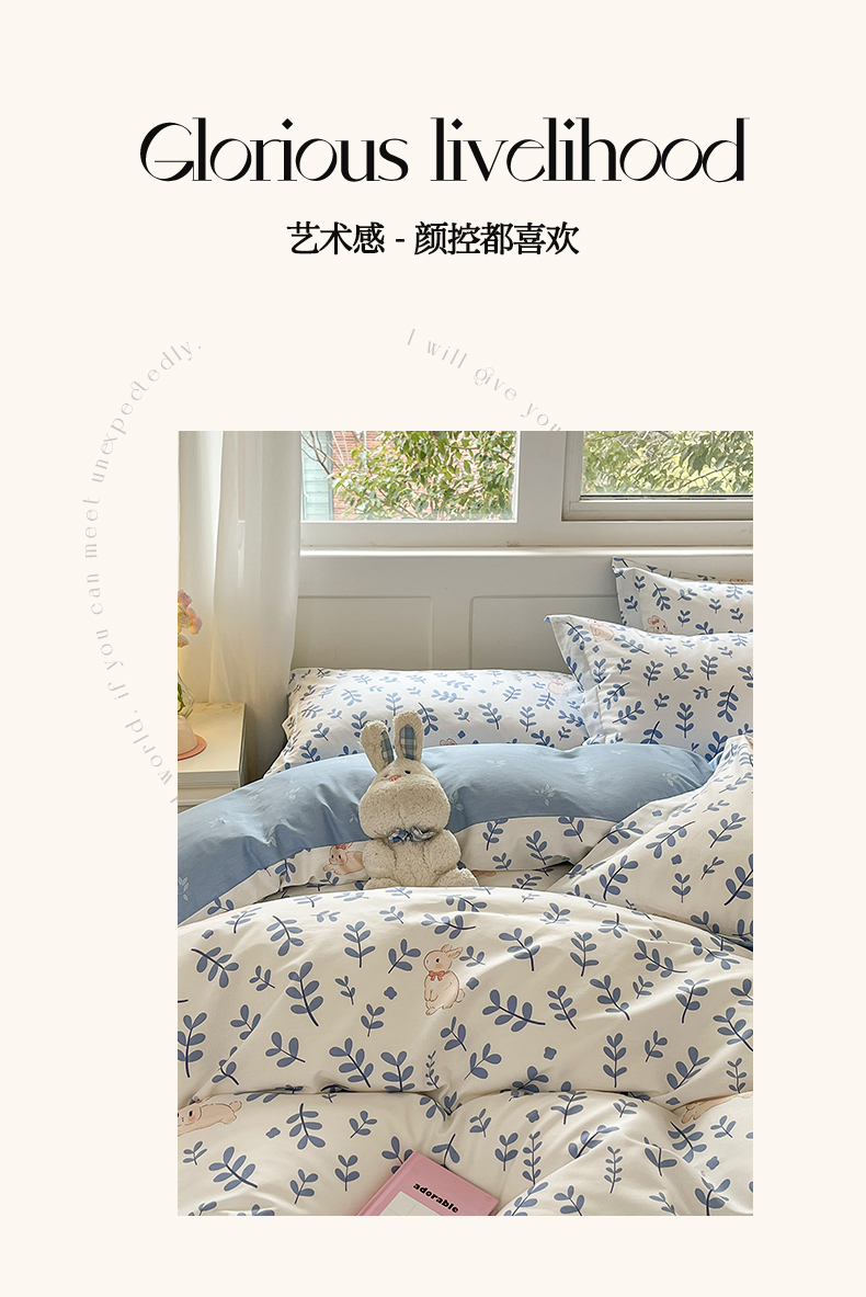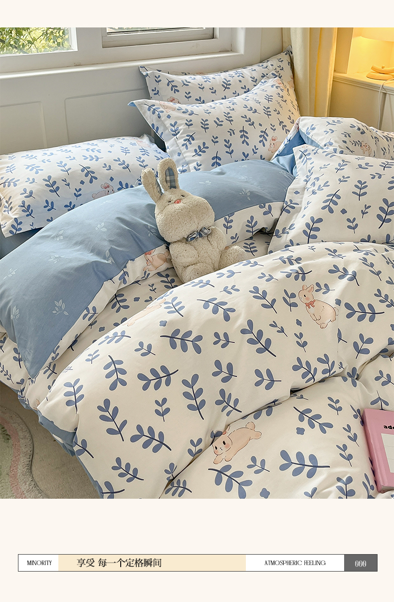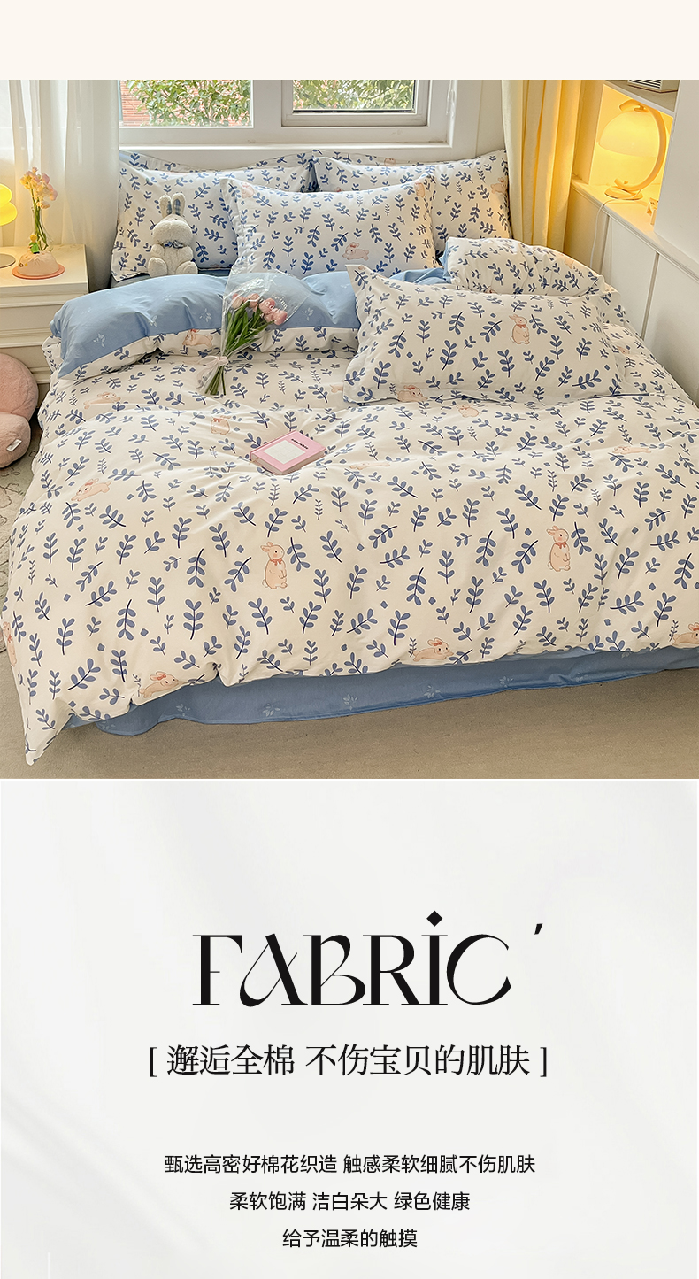 当前位置: 91家纺网 > 商品网购 > 床品套件 > 四件套 > 其它四件套 > 2024新款全棉小清新印花单品套件--四件套 兔影