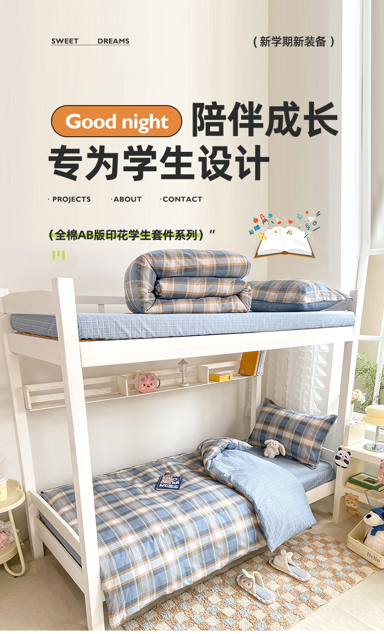 好眠好梦家纺 2024新款全棉学生大礼包六件套 海瑟薇-蓝