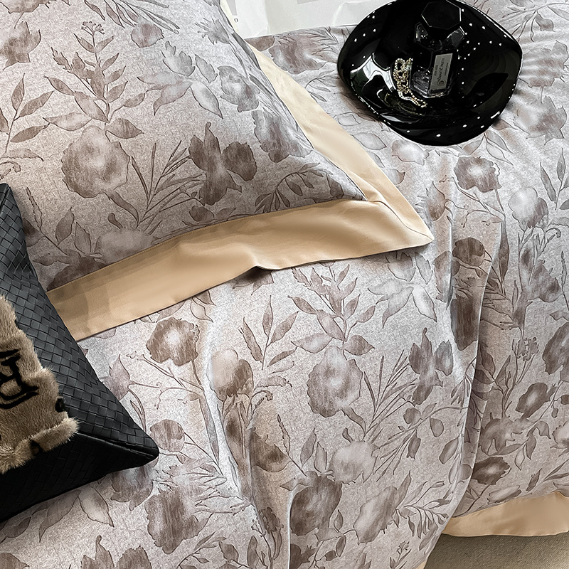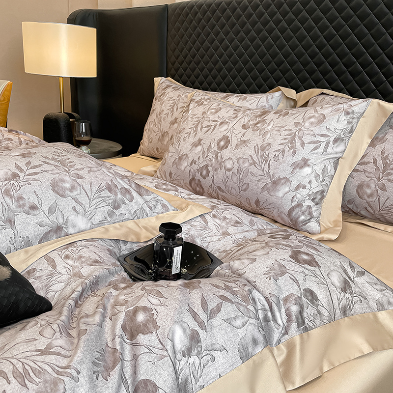 商品名称:栩裕纺织 2024新款丝棉臻绒磨毛数码印花四件套--兰羽系列 香颂