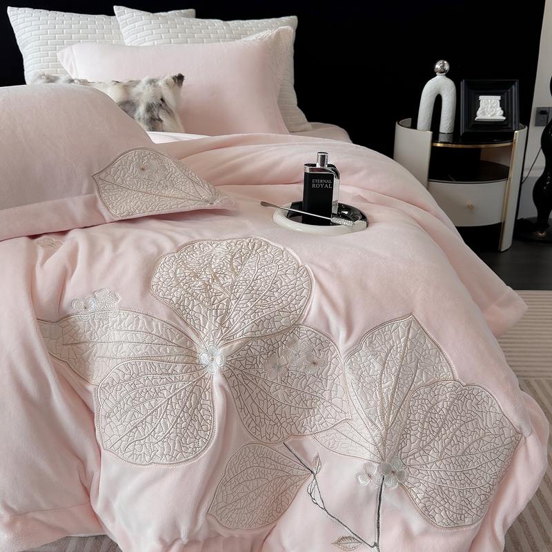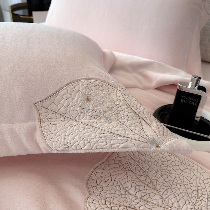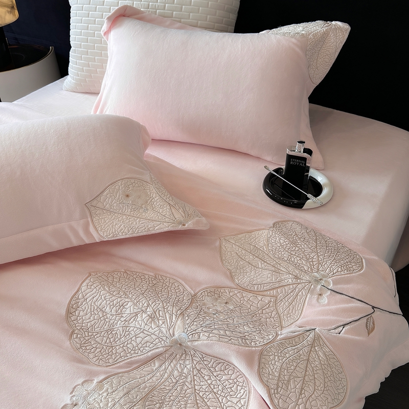沐白家居 2024新款全消光高克重锦芙牛奶绒绣花四件套-香雪兰 香雪兰-蔷薇粉