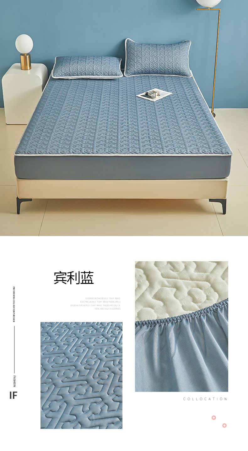 商品名称:席佬大 2025新款A类简约凉感丝乳胶席子凉席 宾利蓝(床笠款)