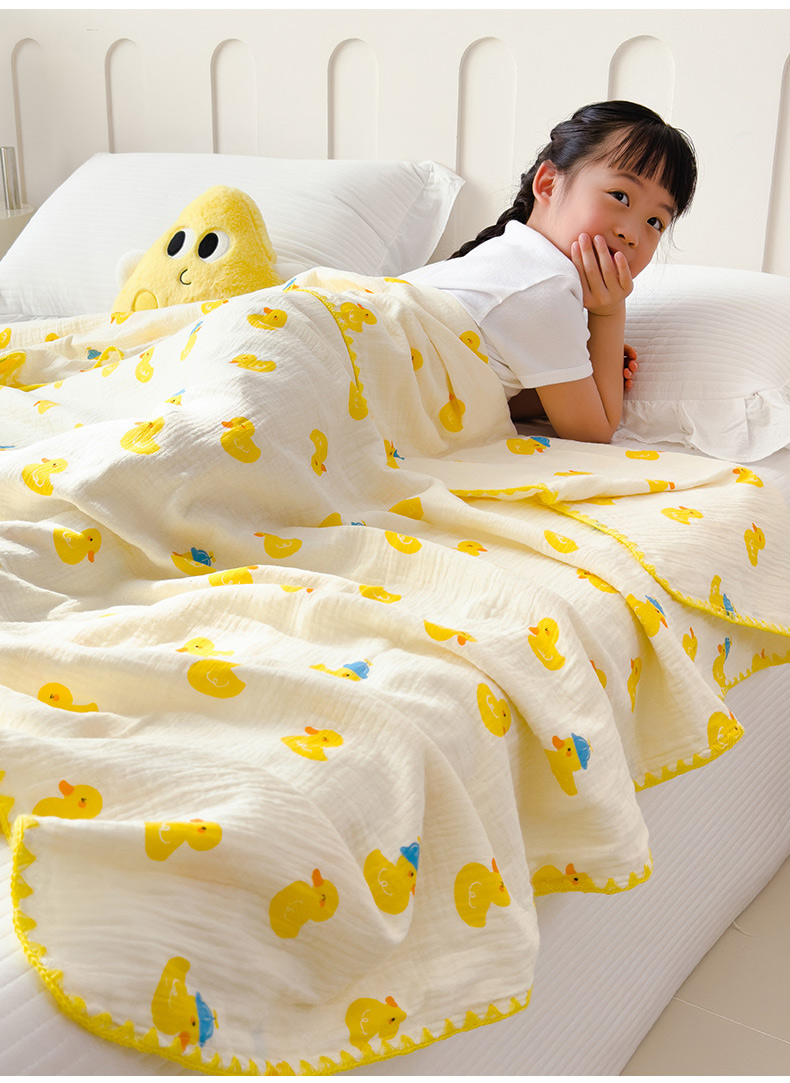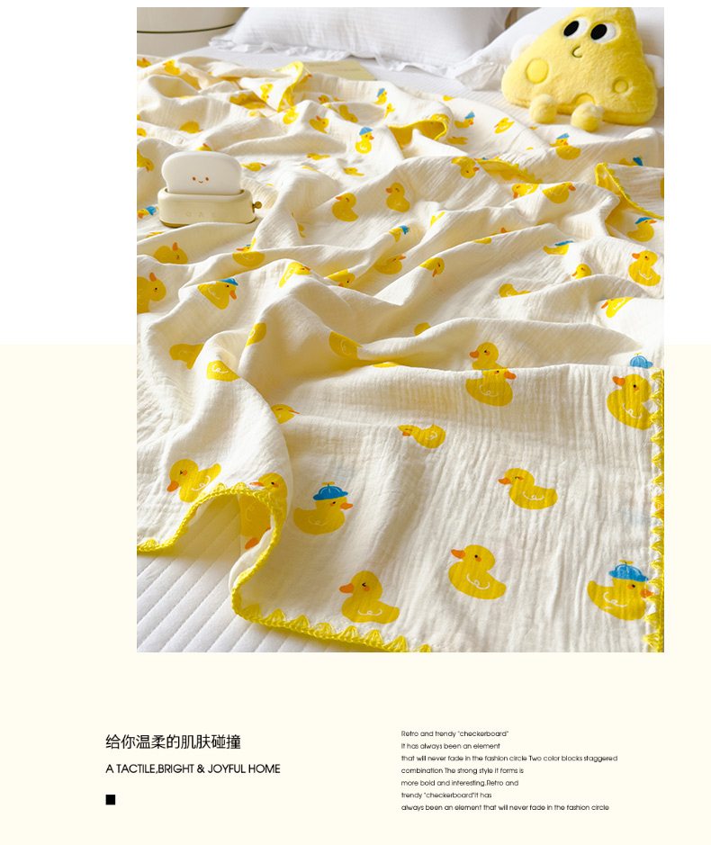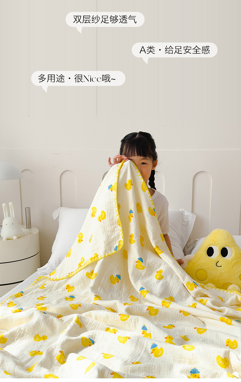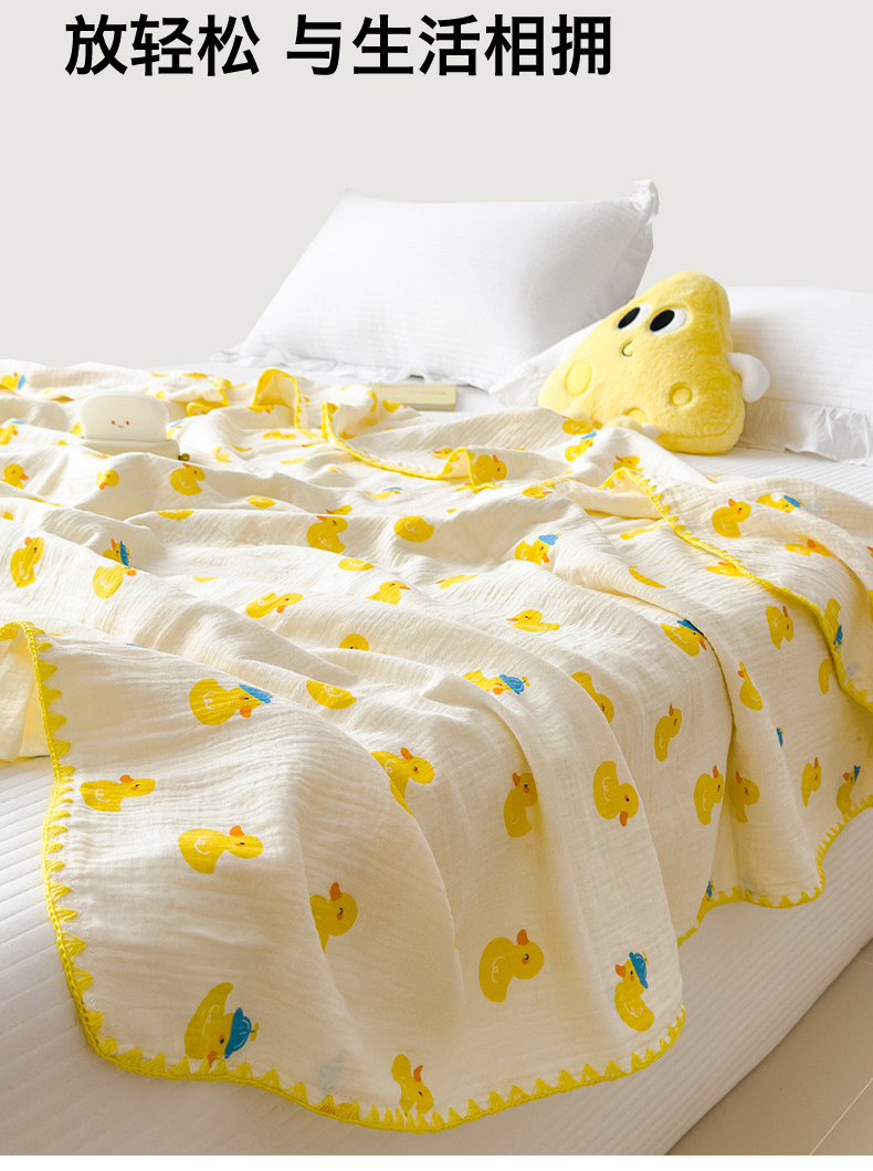 商品名称:兄弟坊 2025全棉抗菌皱皱双层纱夏被午睡毯盖毯空调毯夏凉被沙发毯 皱皱纱-元气鸭