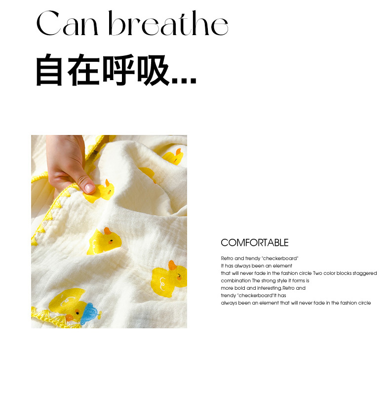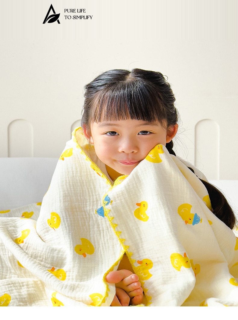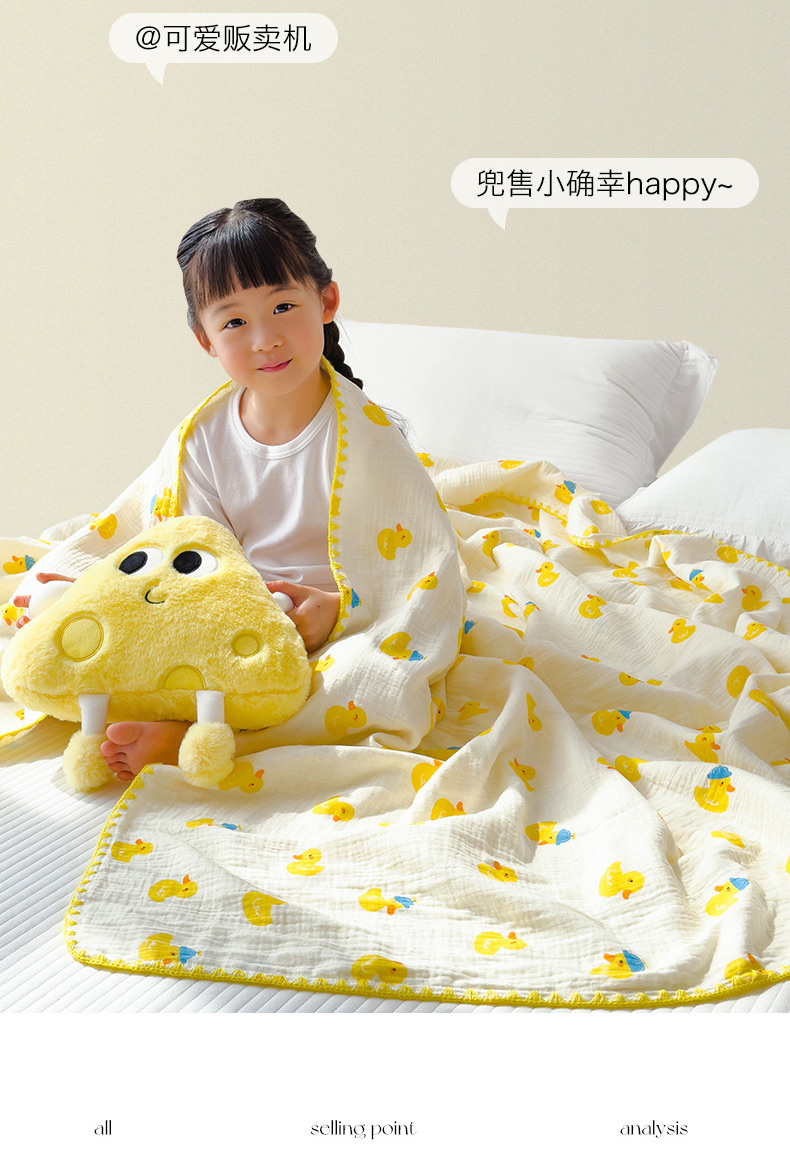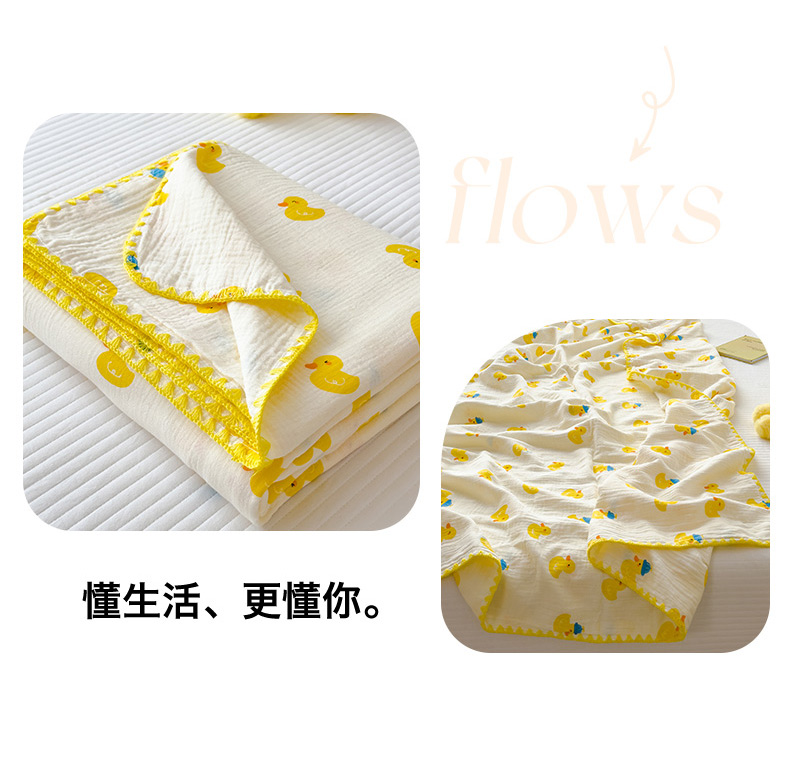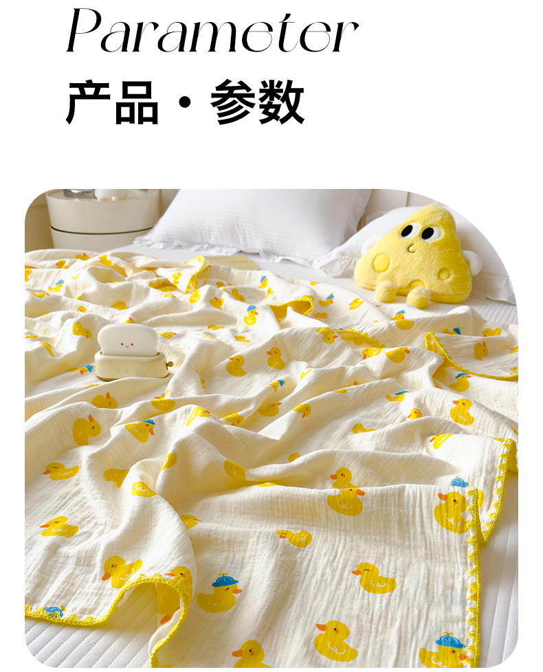 商品名称:兄弟坊 2025全棉抗菌皱皱双层纱夏被午睡毯盖毯空调毯夏凉被沙发毯 皱皱纱-元气鸭