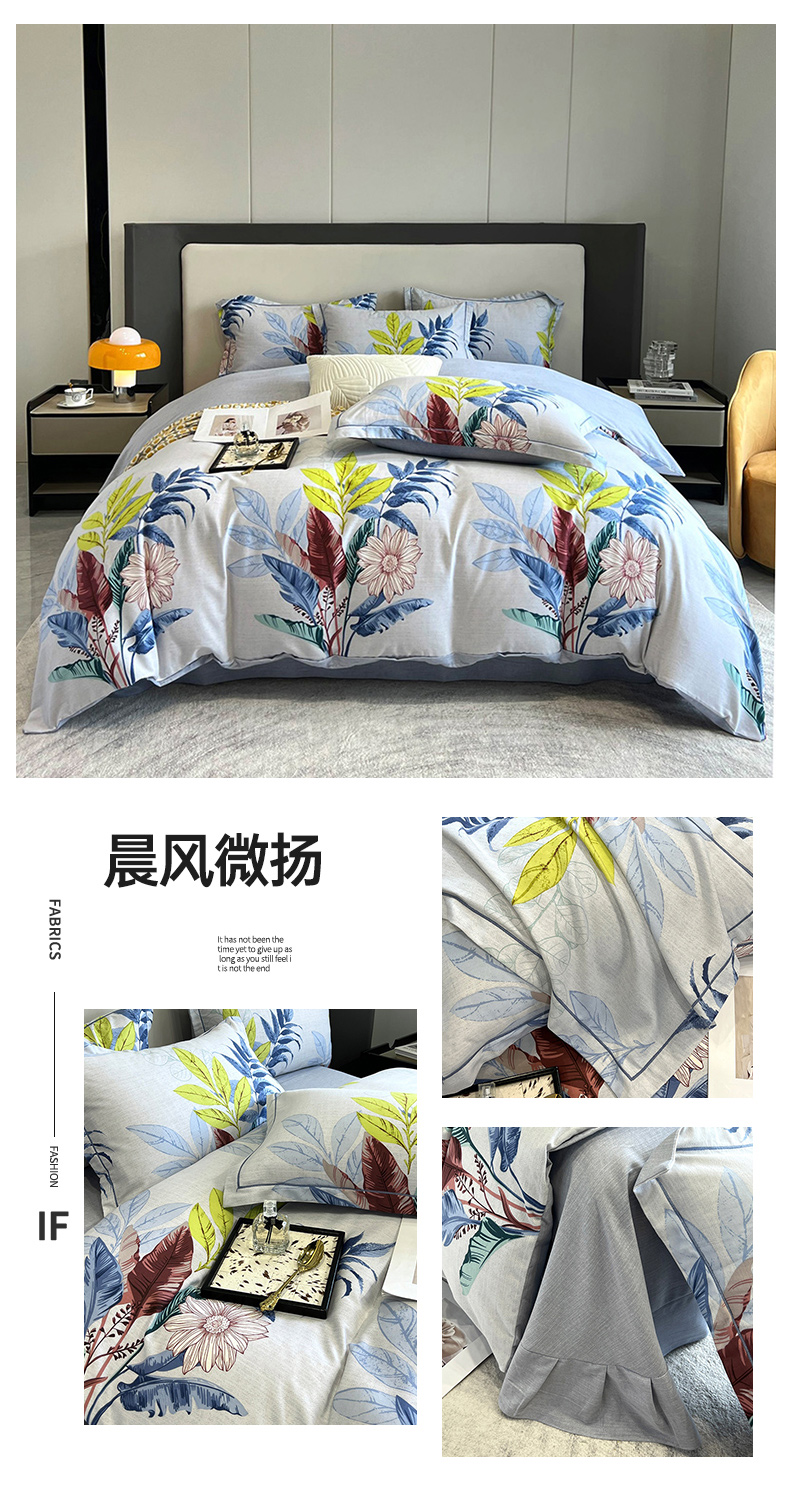 商品名称:曲之慕 2025直播爆款纯棉磨毛 高克重加厚全棉磨毛印花四件套 晨风微扬