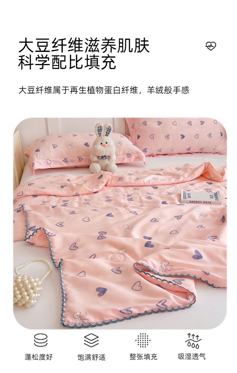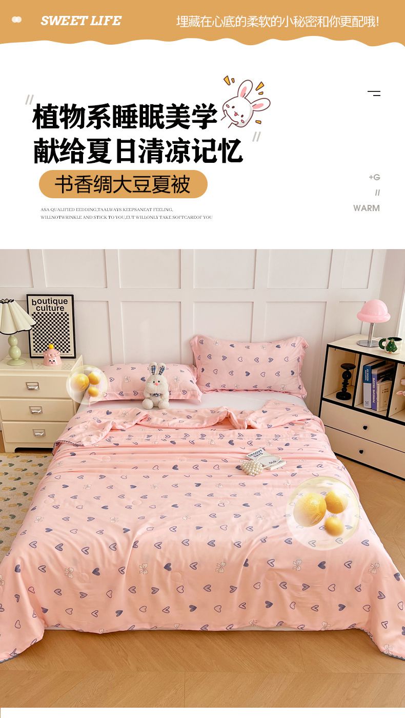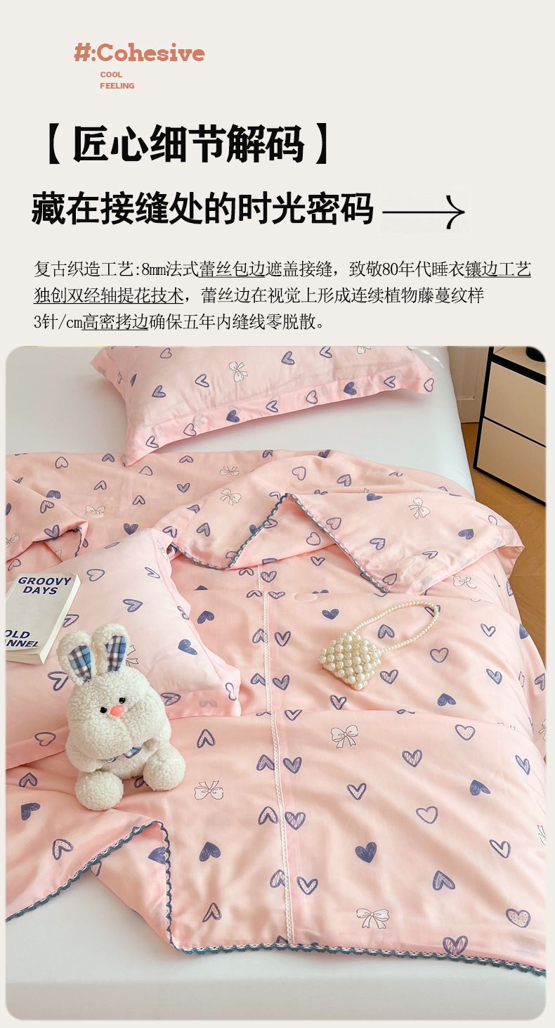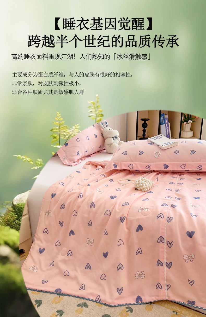 商品名称:VIP被业 2025新款书香绸网红直播小红书夏凉被凉感冰丝天丝夏被 怦然心动