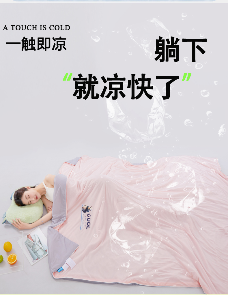 商品名称:(总)VIP被业 2025新款西瓜凉感丝夏被冰淇淋云母日本凉感科技冰淇淋氨纶凉感天丝纯色夏被空调被
