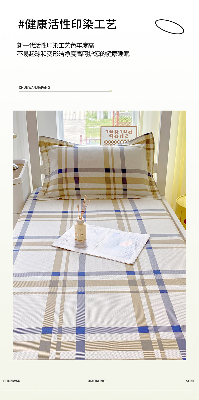 春皖家纺 2025新款学生季全棉纯棉13070印花单床笠 床笠单件 瑞格聚福