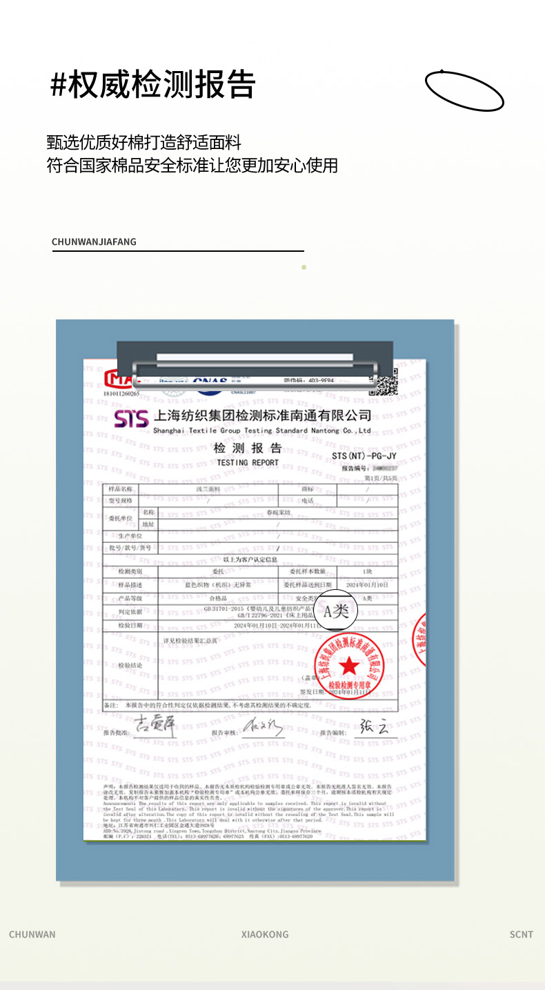 4、通州区市场监管局川姜分局友情提醒:近期针对抗静电,无静电,抗菌防螨,及有关舒适度,百分比的举报高发。为不影响商品正常销售,请各商家高度重视,自检自查及时整改,谢谢配合!