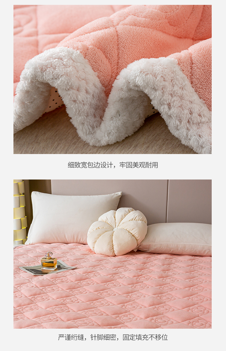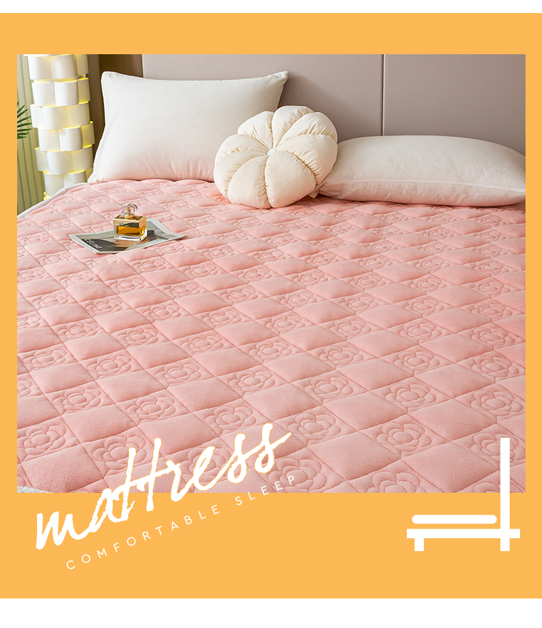 商品名称:正邦家纺 2025新款学生宿舍上下铺牛奶绒刺绣玫瑰花夹棉床垫床护垫床褥子 仙桃粉
