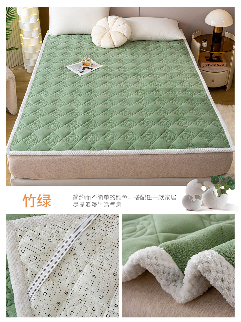 (总)正邦家纺 2025新款加厚全消光牛奶绒床垫夹棉床褥高克重5D雕花牛奶绒单人床上下铺床护垫,苹果绿,青花蓝,沙茶色,月蓝,柔雾灰,桃夭,组合