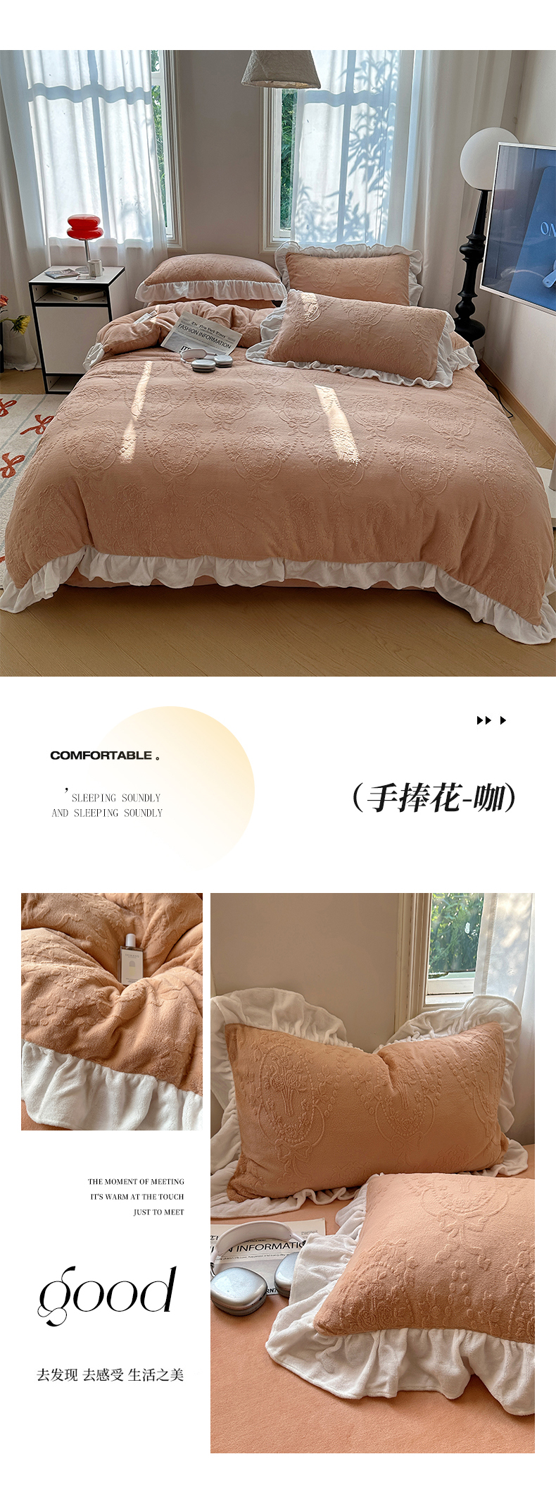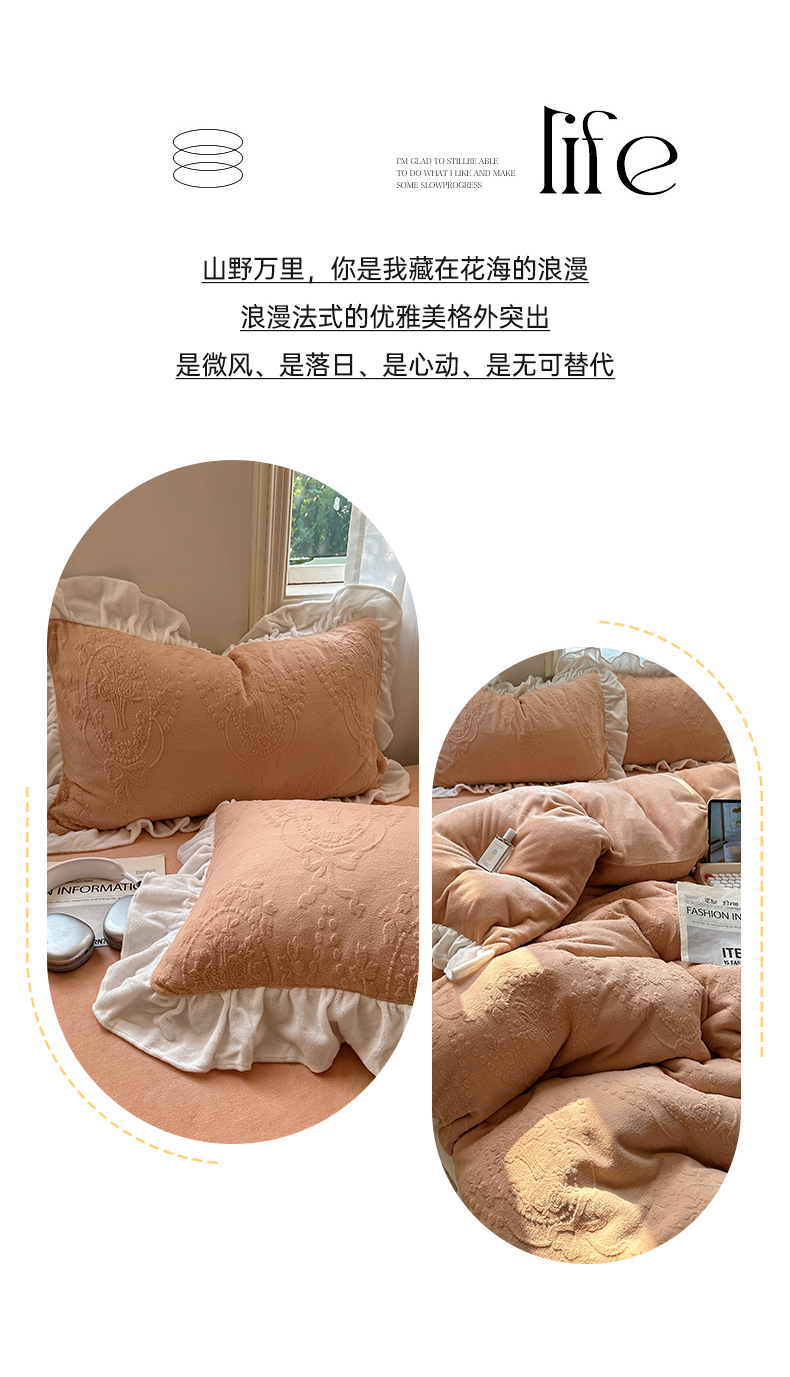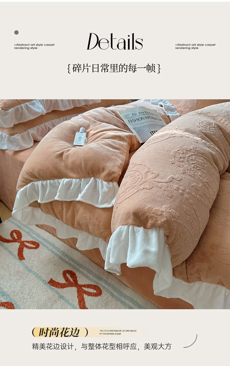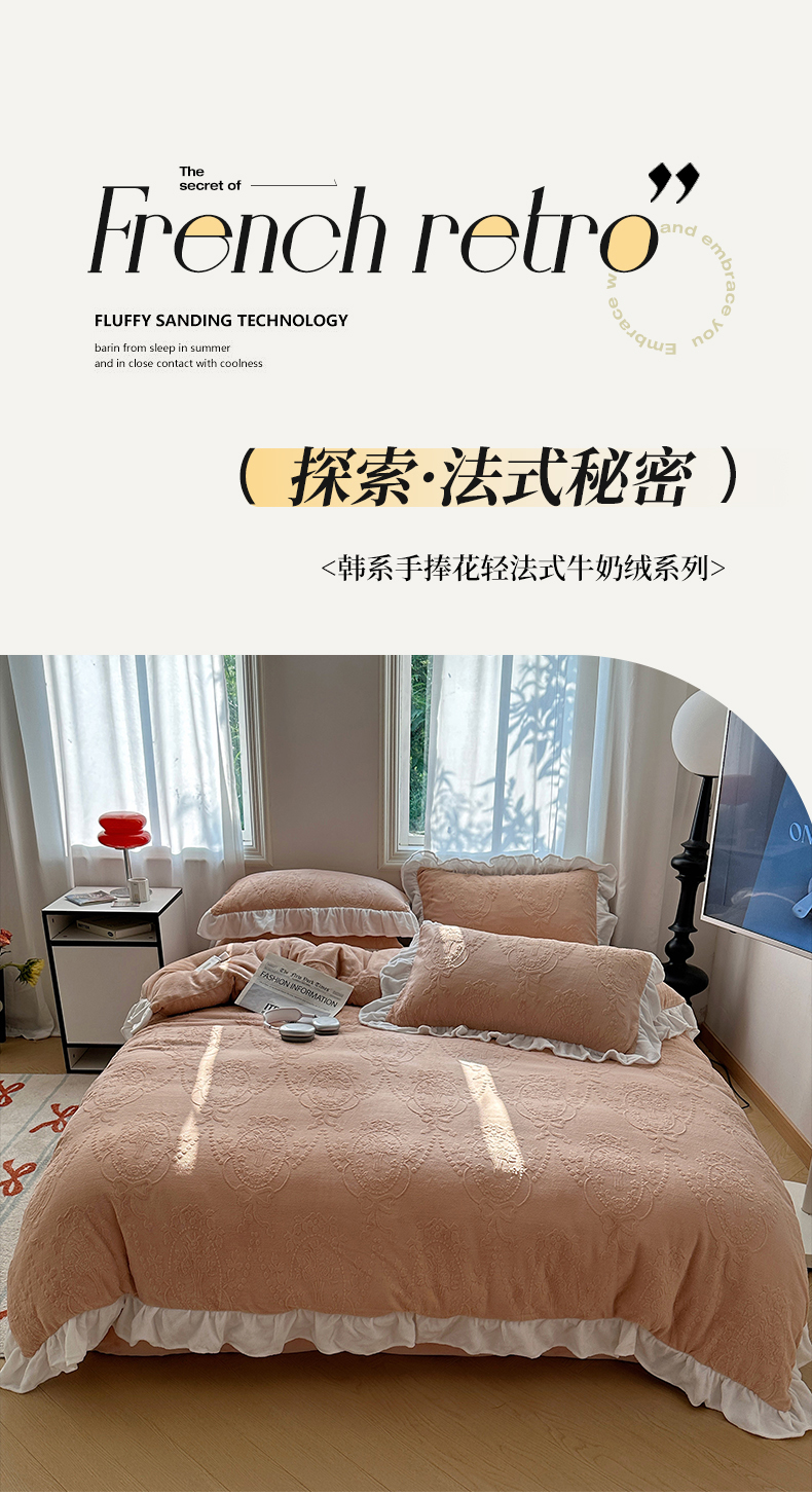 当前位置: 91家纺网 > 商品网购 > 床品套件 > 四件套 > 牛奶绒四件套 > 六巷胡同 2025新款韩系手捧花轻法式花边款牛奶绒四件套-风格一 手捧花-咖