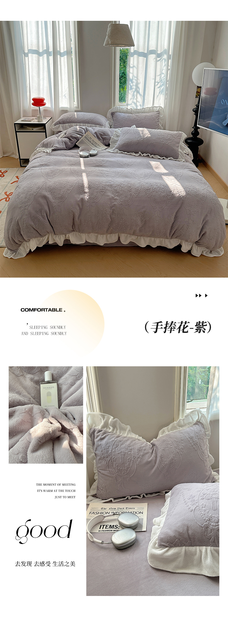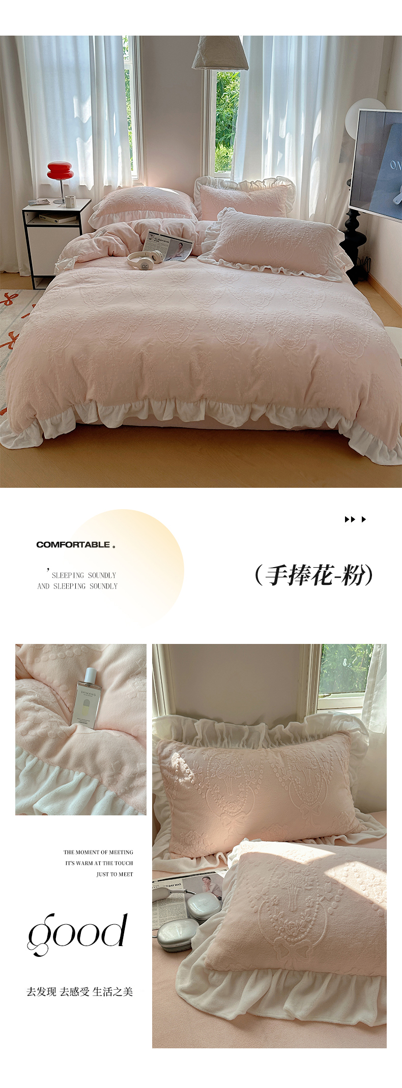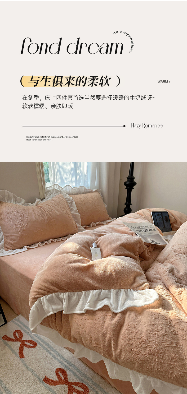 当前位置: 91家纺网 > 商品网购 > 床品套件 > 四件套 > 牛奶绒四件套 > 六巷胡同 2025新款韩系手捧花轻法式花边款牛奶绒四件套-风格一 手捧花-咖