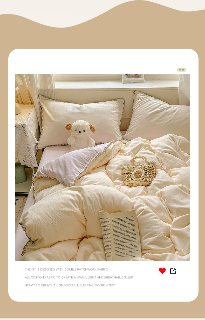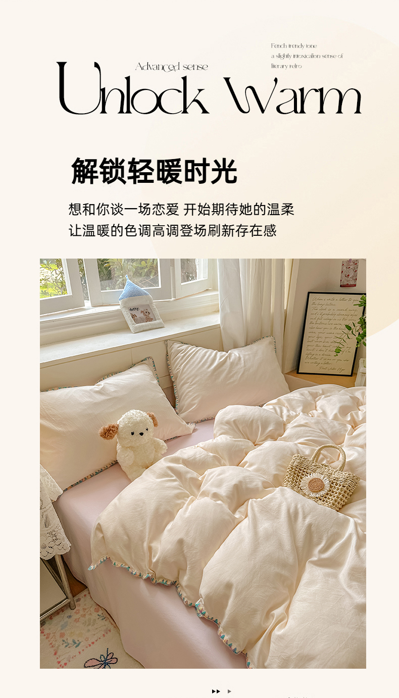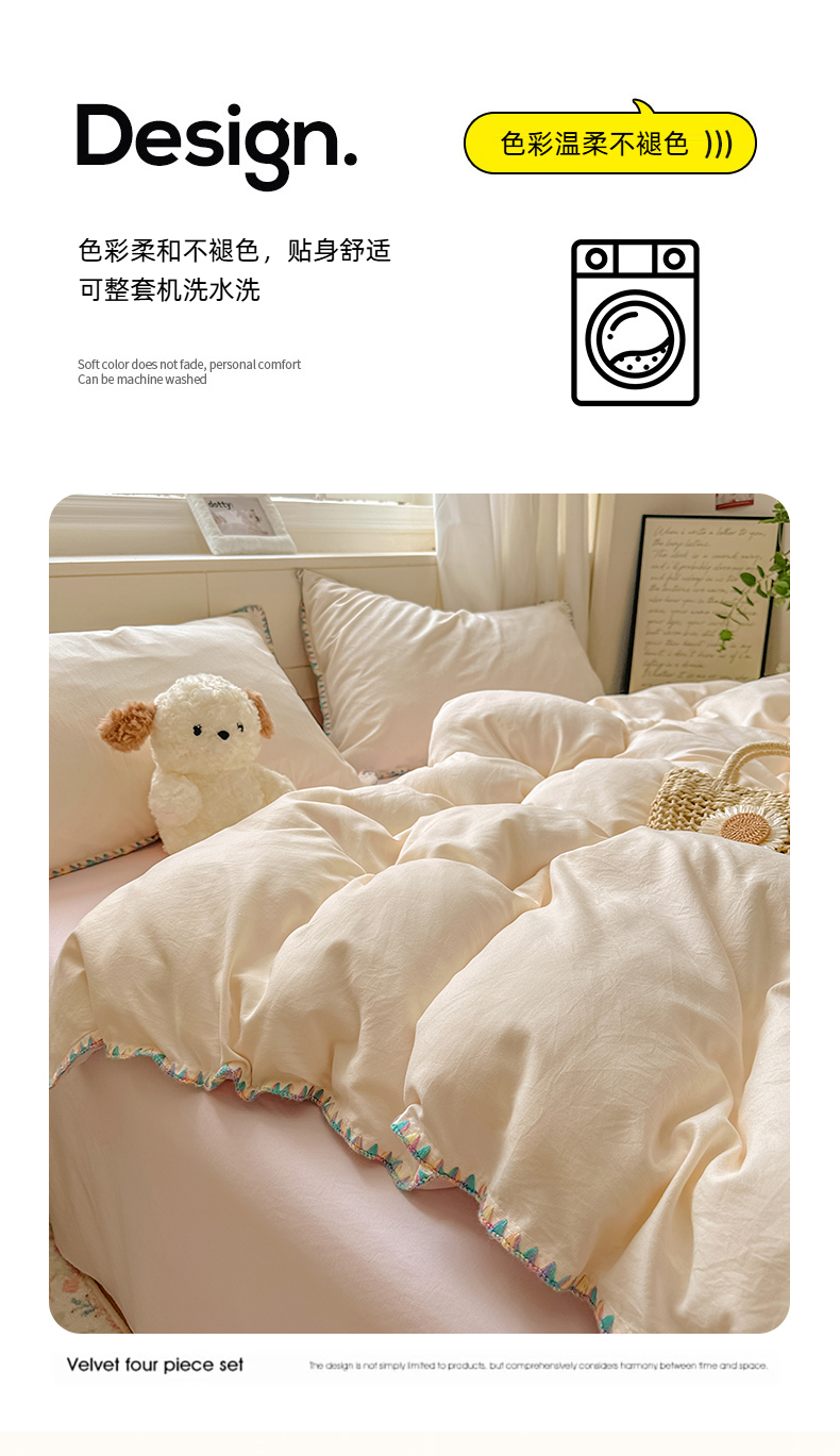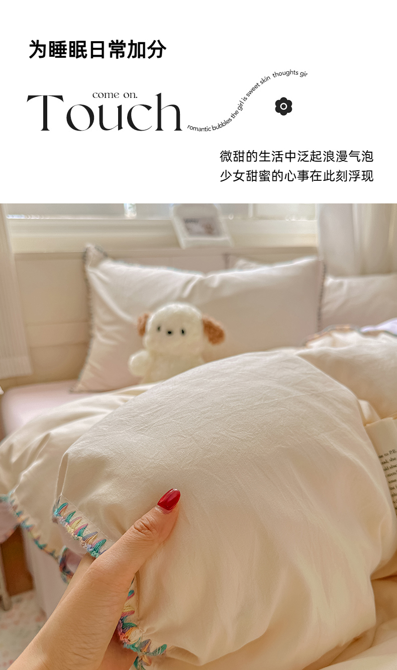 当前位置: 91家纺网 > 商品网购 > 床品套件 > 四件套 > 水洗棉四件套 > 冕悠家纺 2025新款A类七彩贝壳边水洗棉四件套 七彩-暮山紫芝士粉