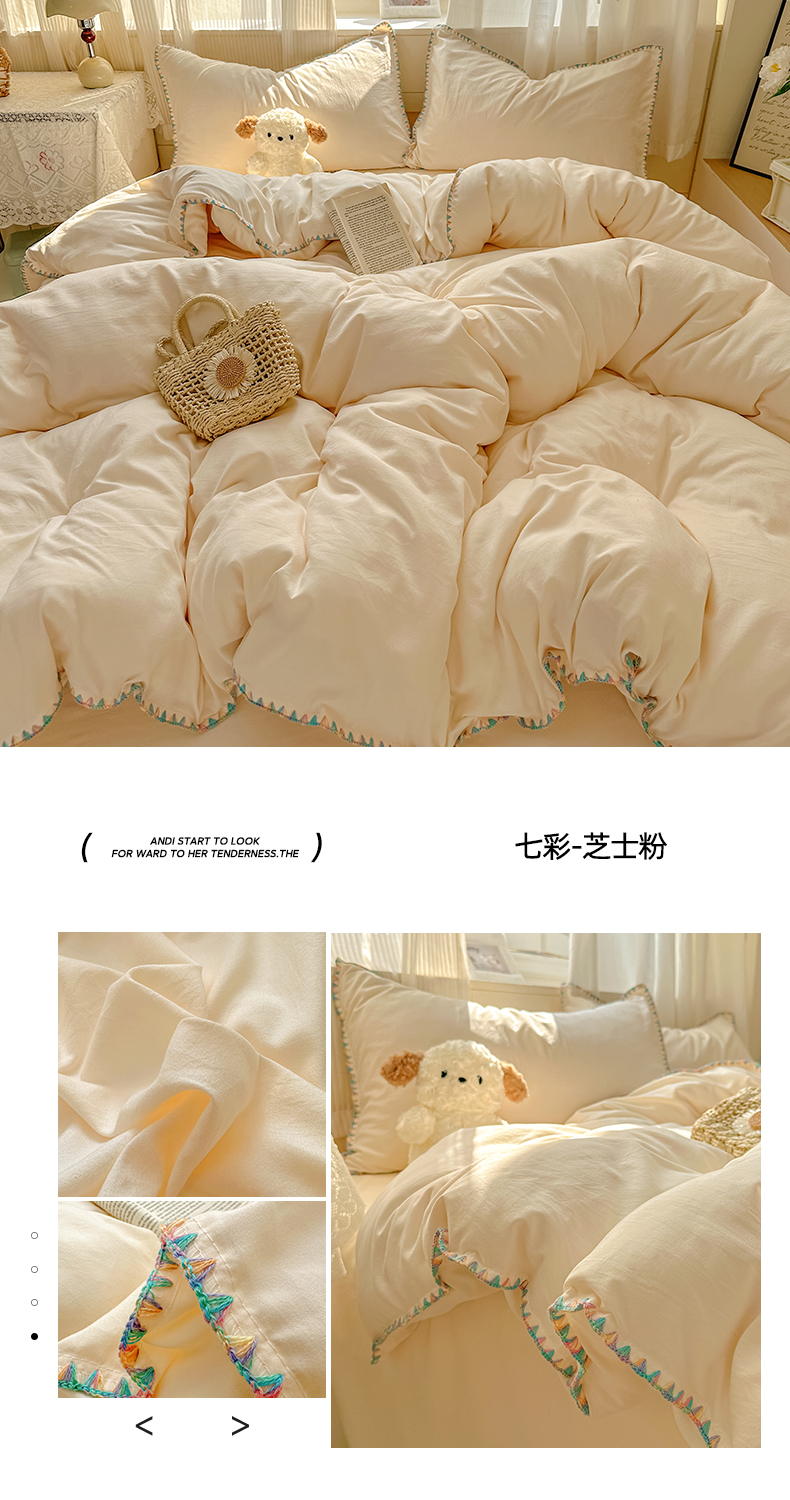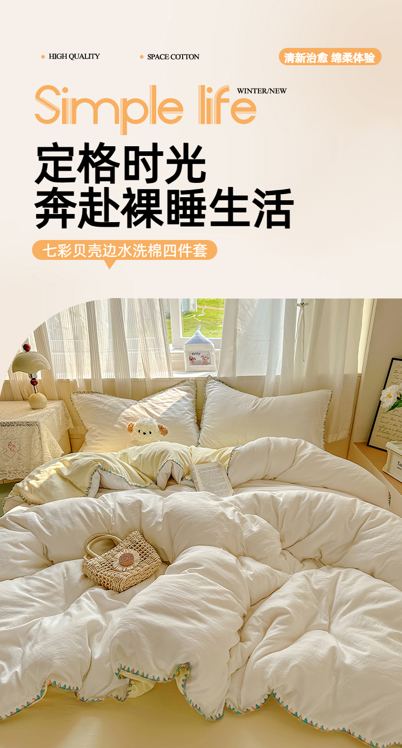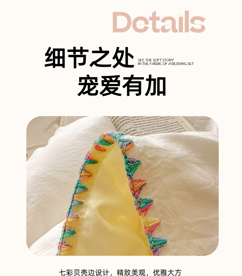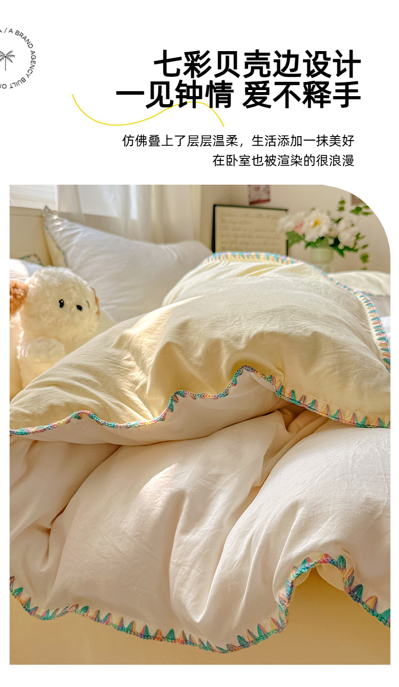 当前位置: 91家纺网 > 商品网购 > 床品套件 > 四件套 > 水洗棉四件套 > 冕悠家纺 2025新款A类七彩贝壳边水洗棉四件套 七彩-芝士奶白