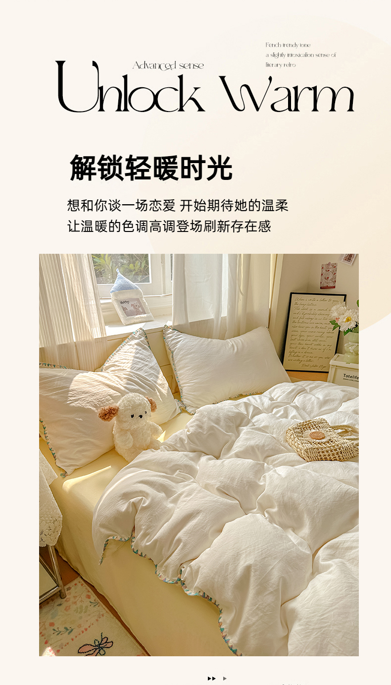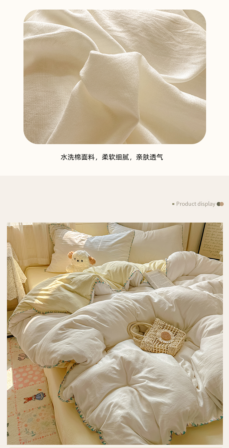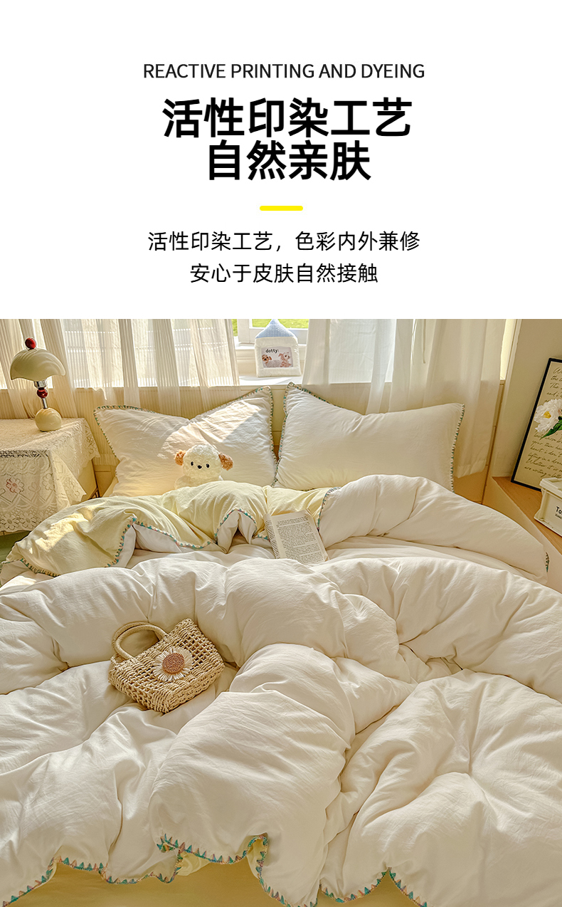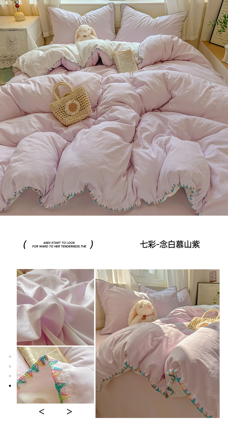 当前位置: 91家纺网 > 商品网购 > 床品套件 > 四件套 > 水洗棉四件套 > 冕悠家纺 2025新款A类七彩贝壳边水洗棉四件套 七彩-芝士奶白
