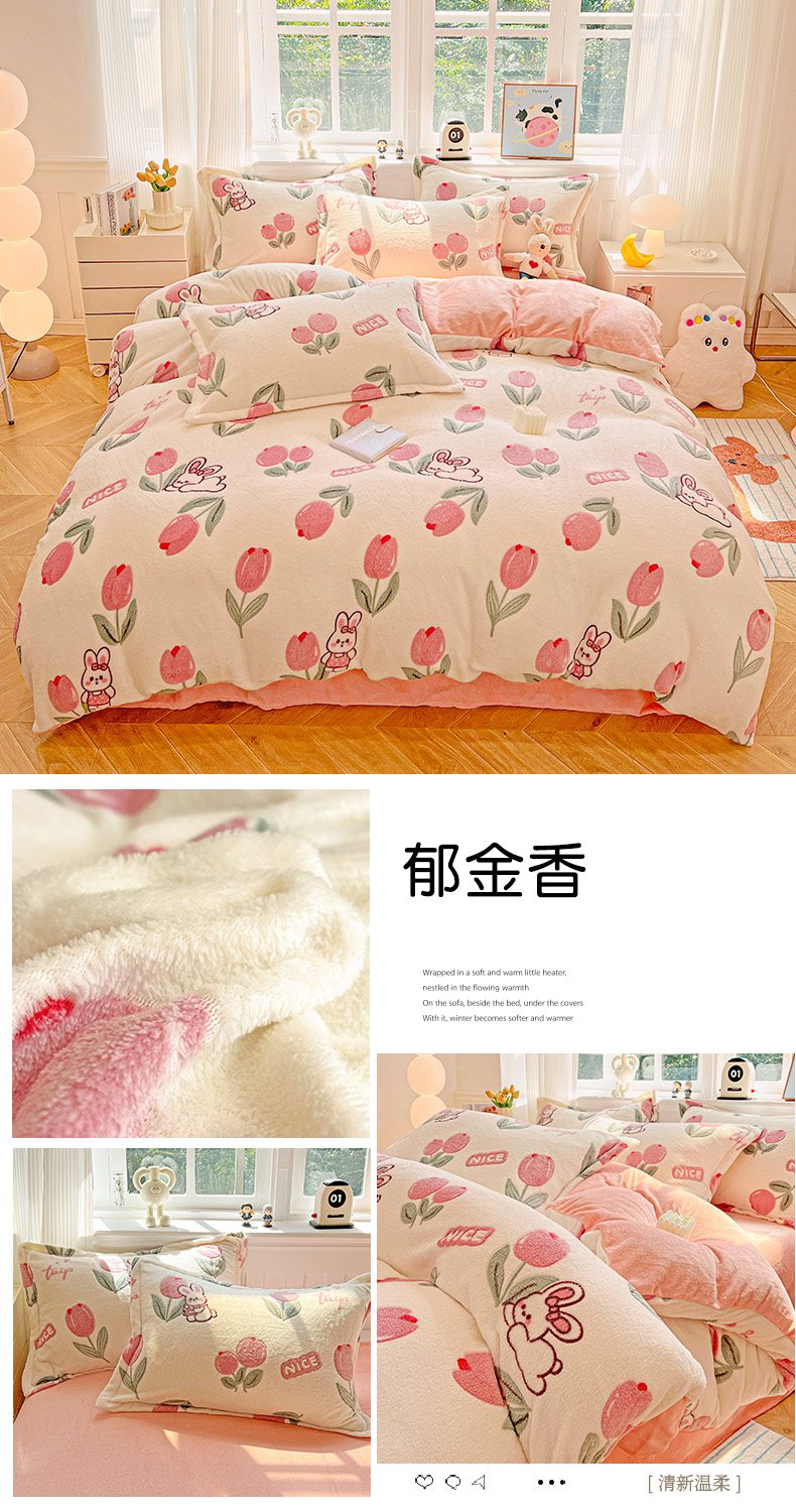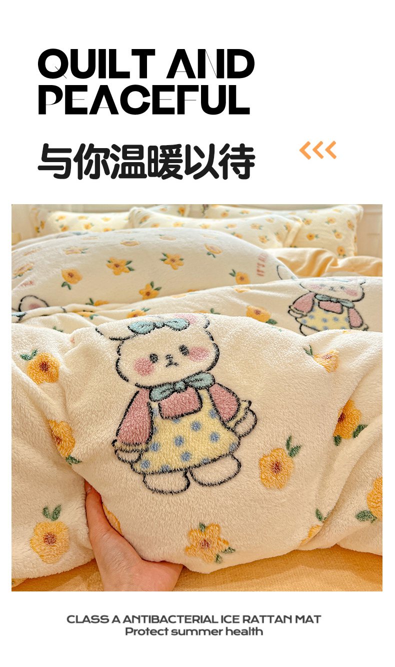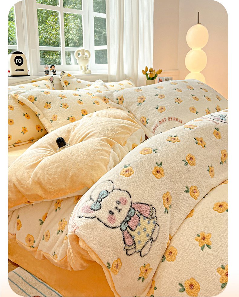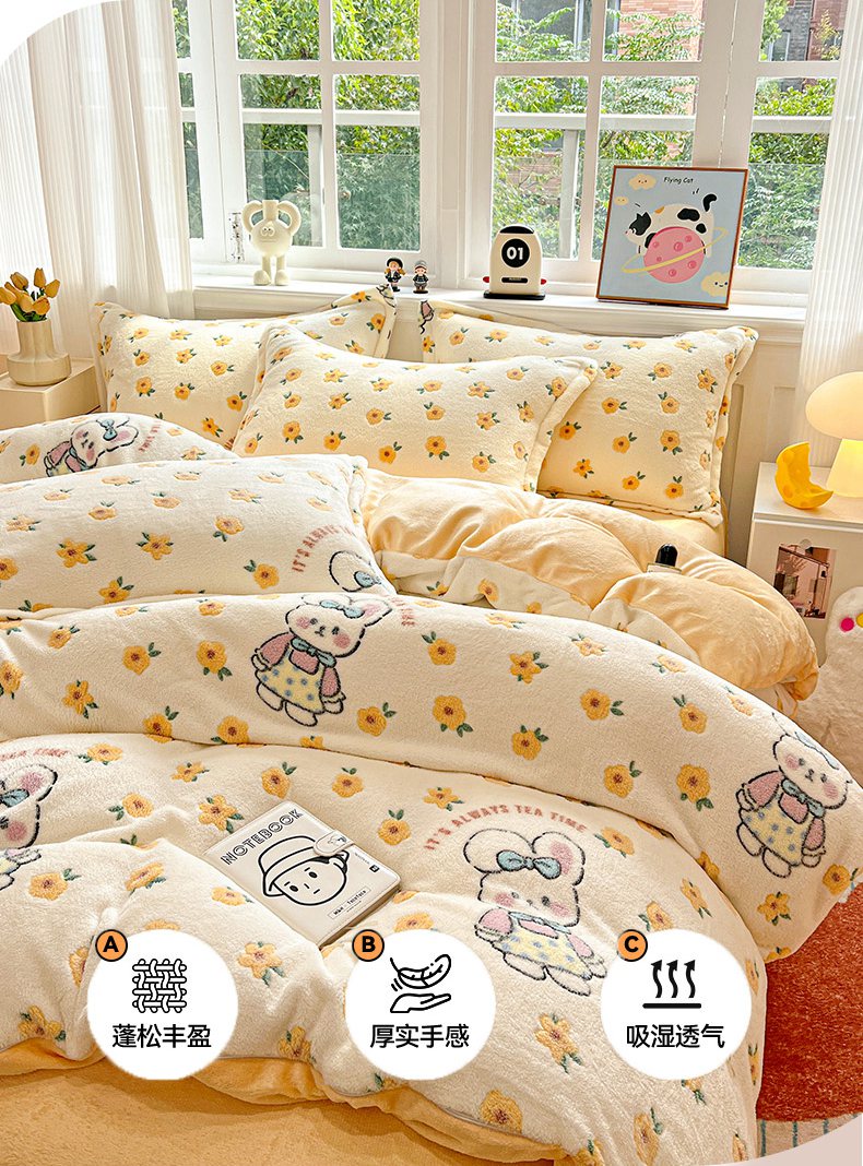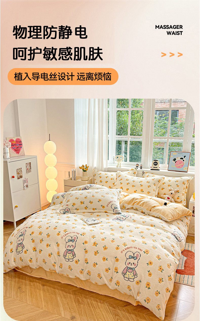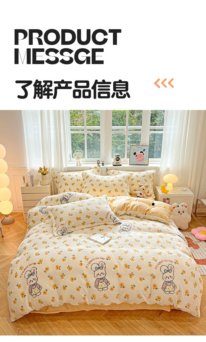 当前位置: 91家纺网 > 商品网购 > 床品套件 > 四件套 > 牛奶绒四件套 > 韩巢家纺 2025新款高克重雪花绒牛奶绒四件套 田园兔(黄)
