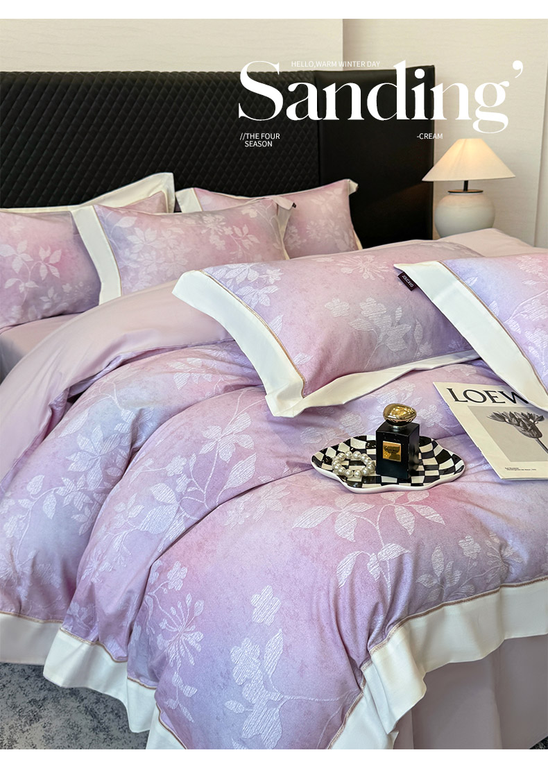 2025冬季热款A类加厚磨毛四件套全棉纯棉数码印花保暖被套床单高端轻奢风床笠床上用品 瑾姝-黛紫