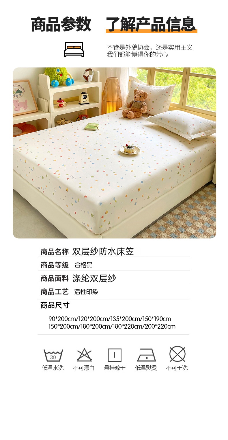 (总)豪选家纺 2025春夏四季新款新品有氧双层纱印花夹棉床笠床护罩床垫保护套,方格熊先生,彩色蝴蝶结,浪漫新花语,萌女伴兔宝,迷你四叶草,趣萌宠乐坊,甜蜜恋爱蓝,兔影醉花涧,小兔兔童话,小鱼儿多多