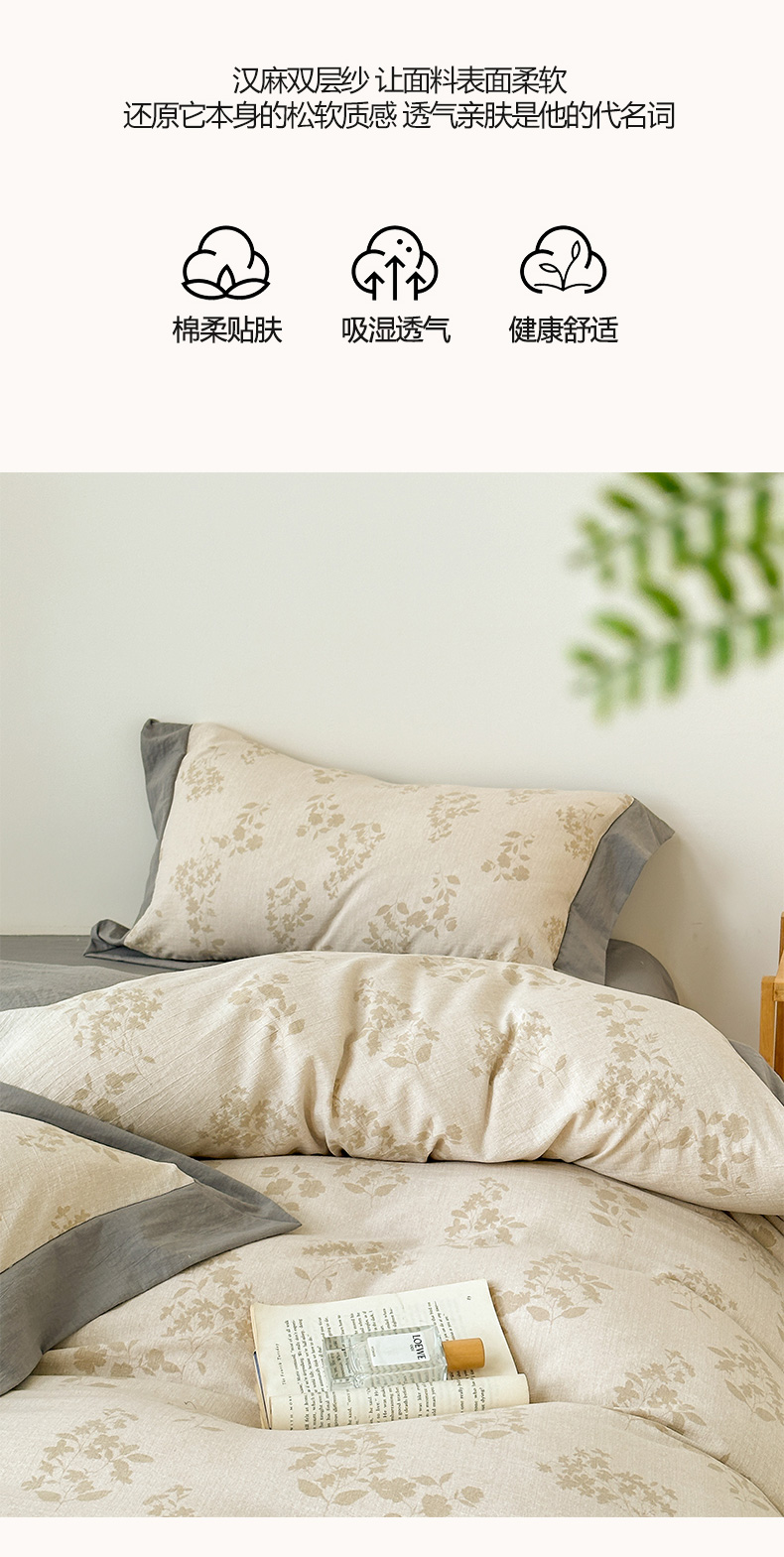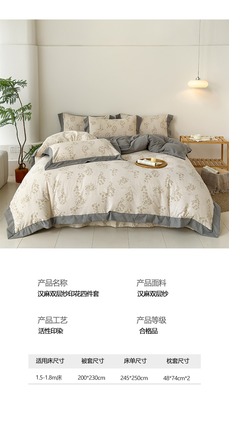 商品名称:雨田家纺 2025新款A类汉麻双层纱四件套 青春年华
