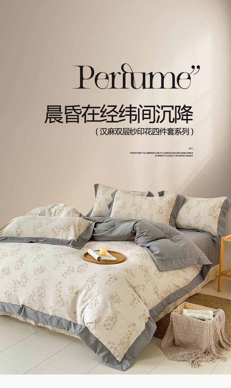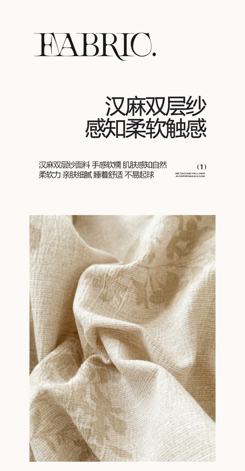 (总)雨田家纺 2025新款A类汉麻双层纱四件套,初春,繁景如画,格韵-咖,快乐时光,青春年华,轻语,维奥,紫郁