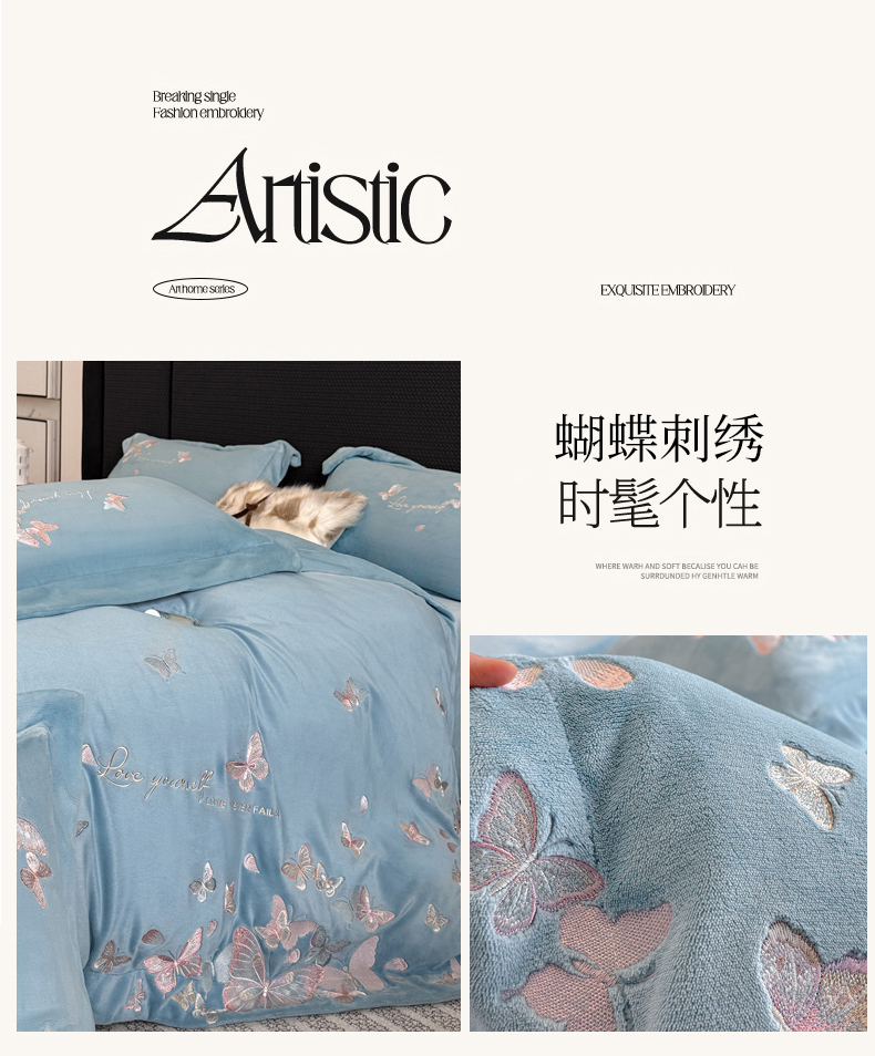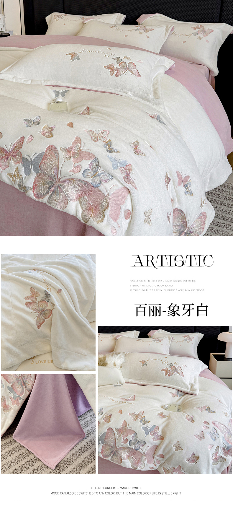 (总)星蕴家纺 2024新款220克全消光牛奶绒四件套--绮丽,奶咖,奶油黄,牛仔蓝,温柔粉