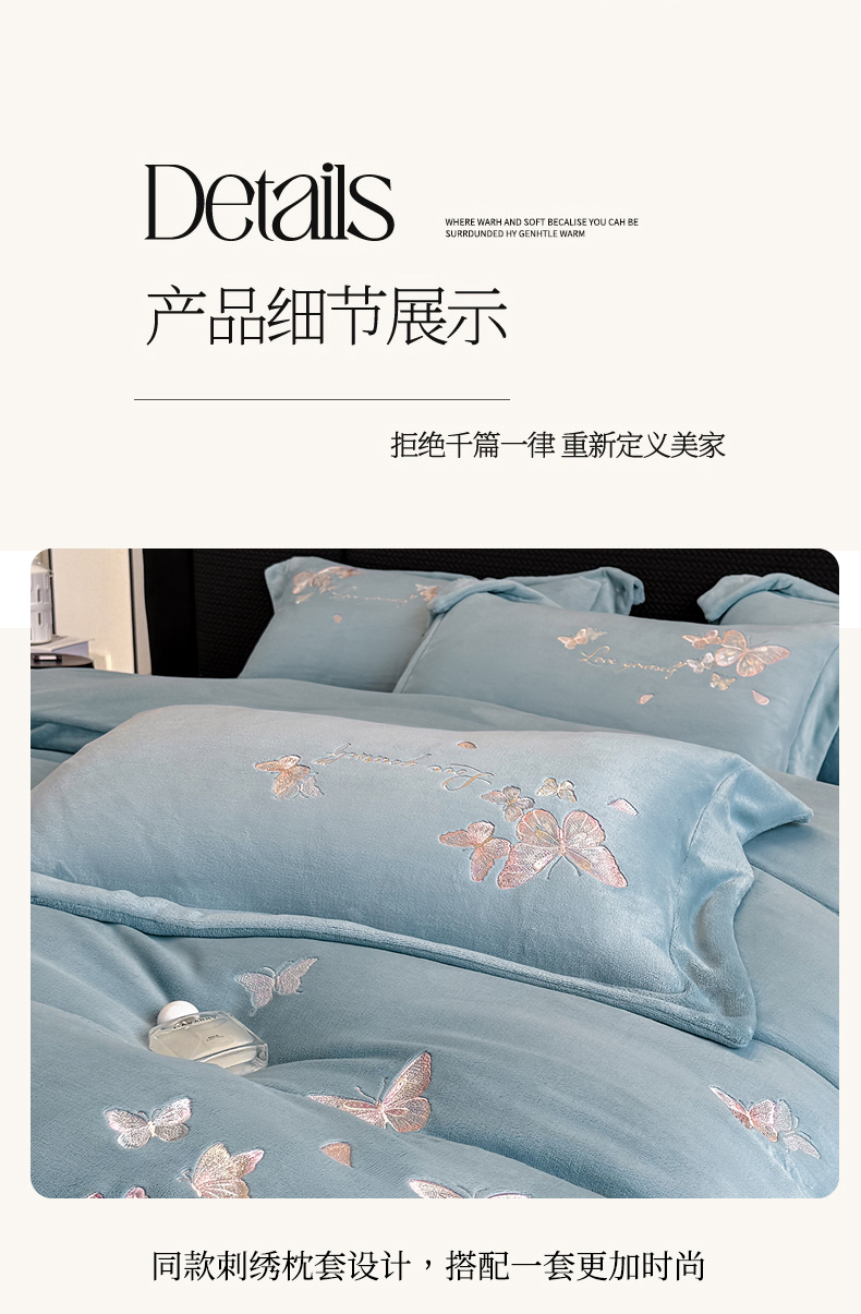 商品名称:星蕴家纺 2025新款230克全消光牛奶绒四件套-佰丽 佰丽-牛仔蓝