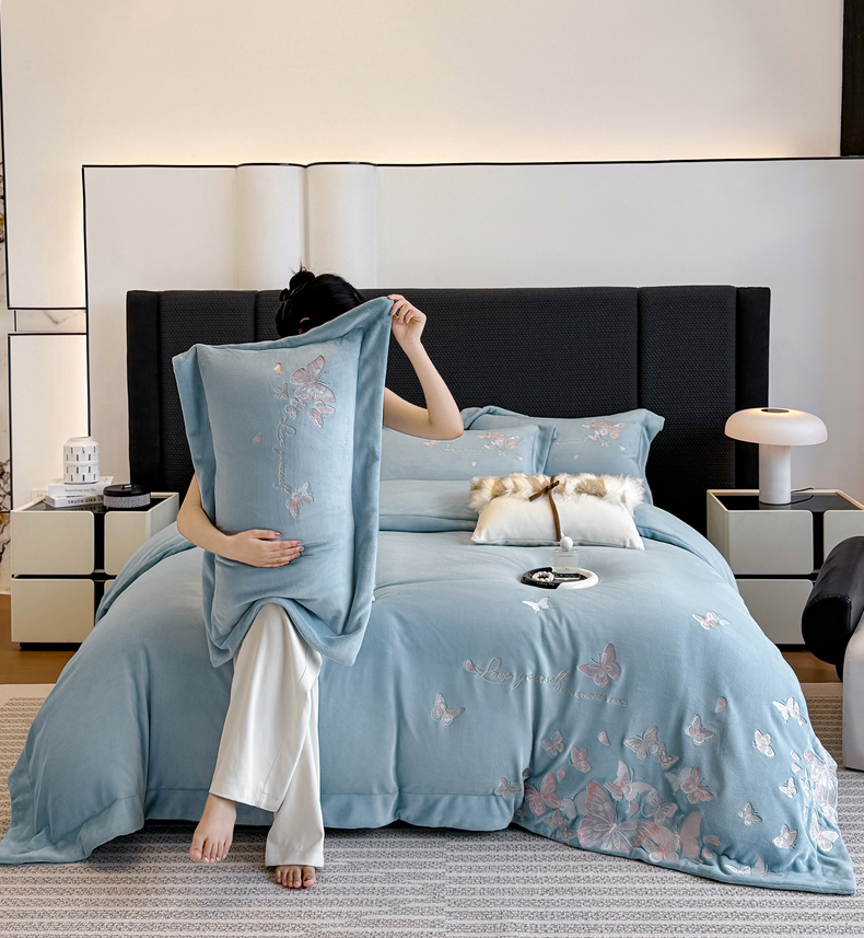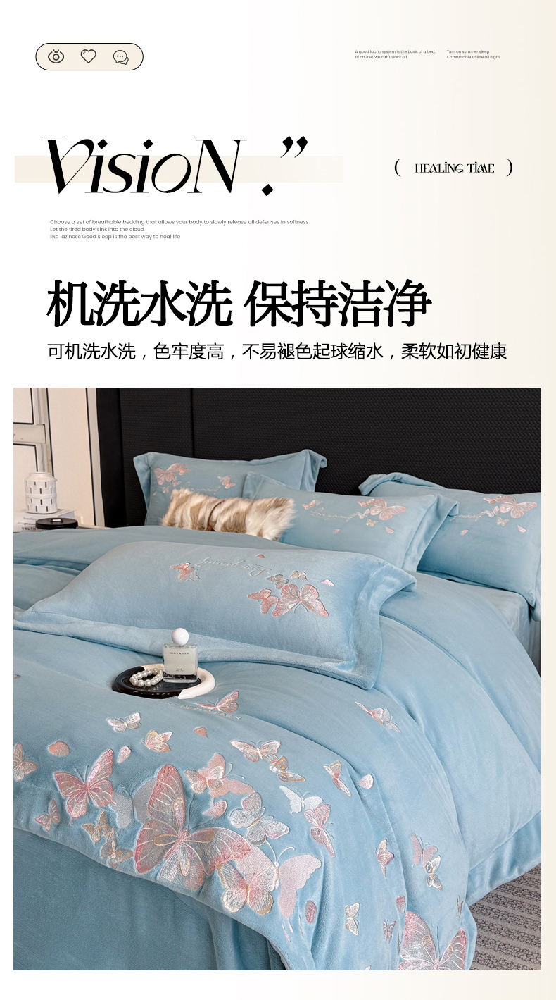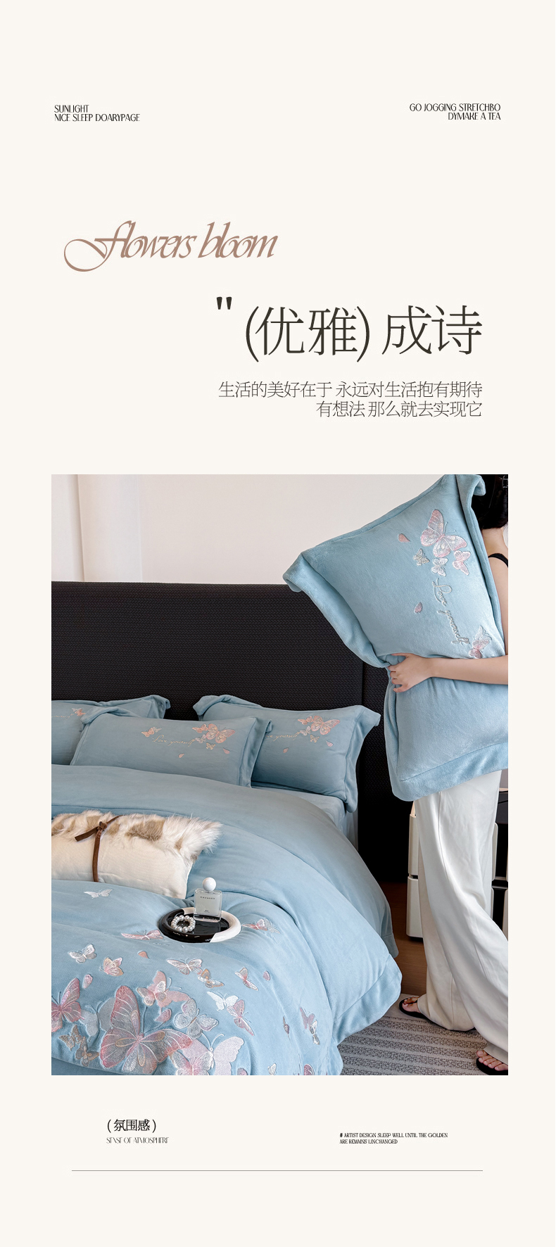 星蕴家纺 2025新款230克全消光牛奶绒四件套-佰丽 佰丽-牛仔蓝