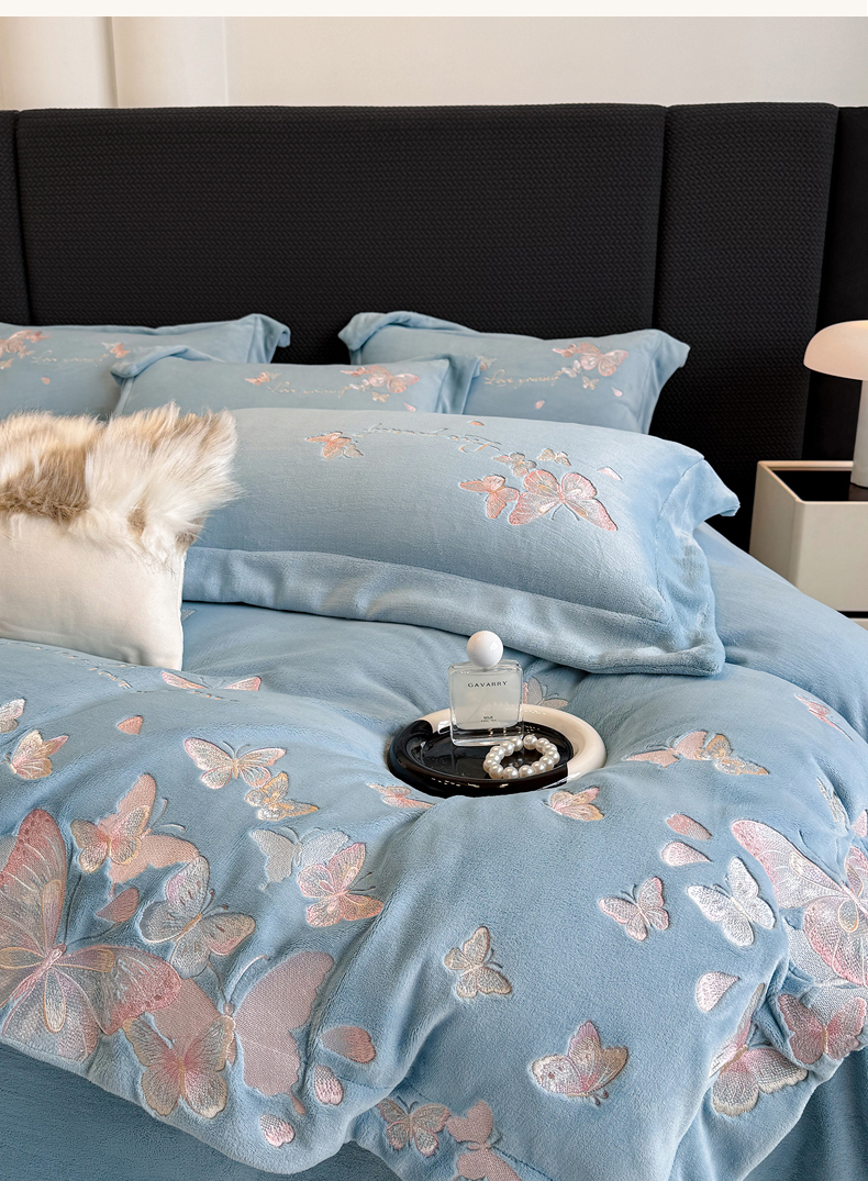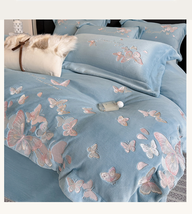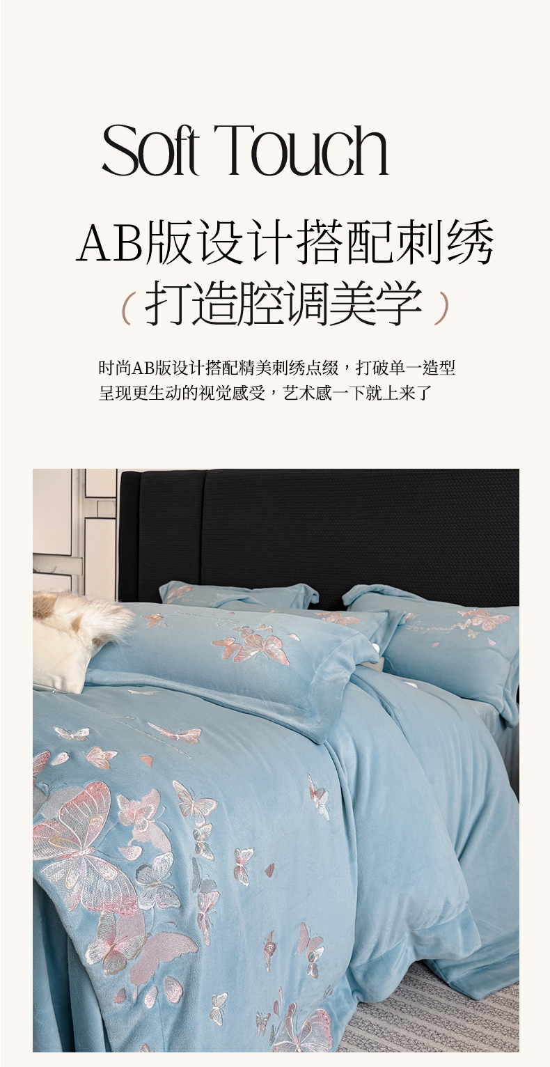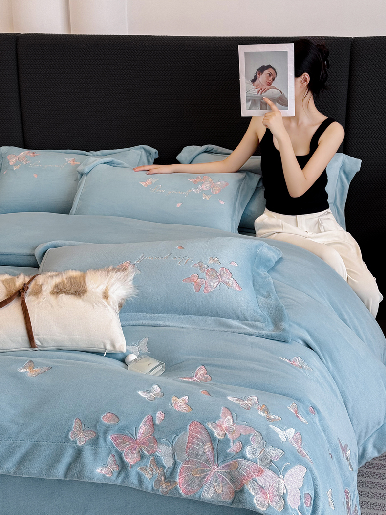 星蕴家纺 2025新款230克全消光牛奶绒四件套-佰丽 佰丽-牛仔蓝