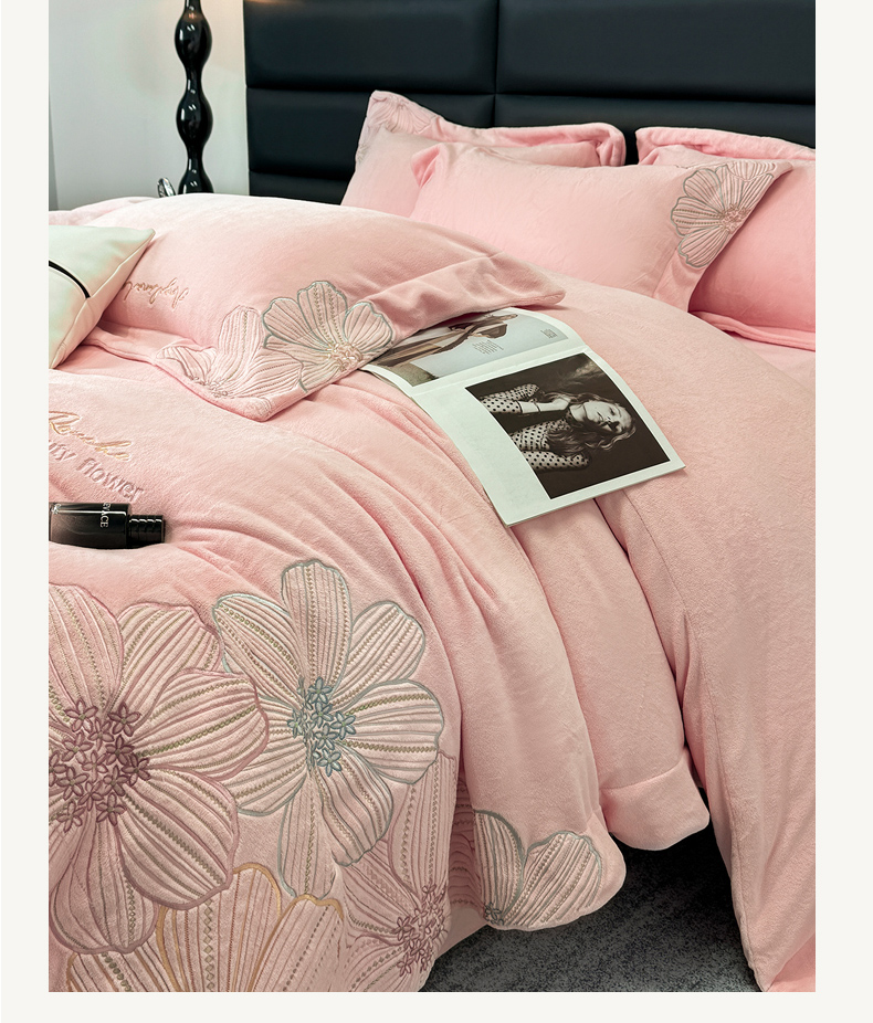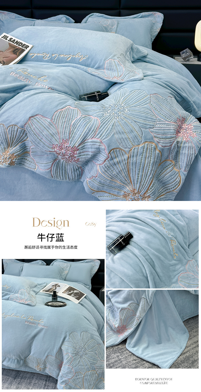 (总)2025新款全消光牛奶绒线条花刺绣+宽边四件套-绮丽