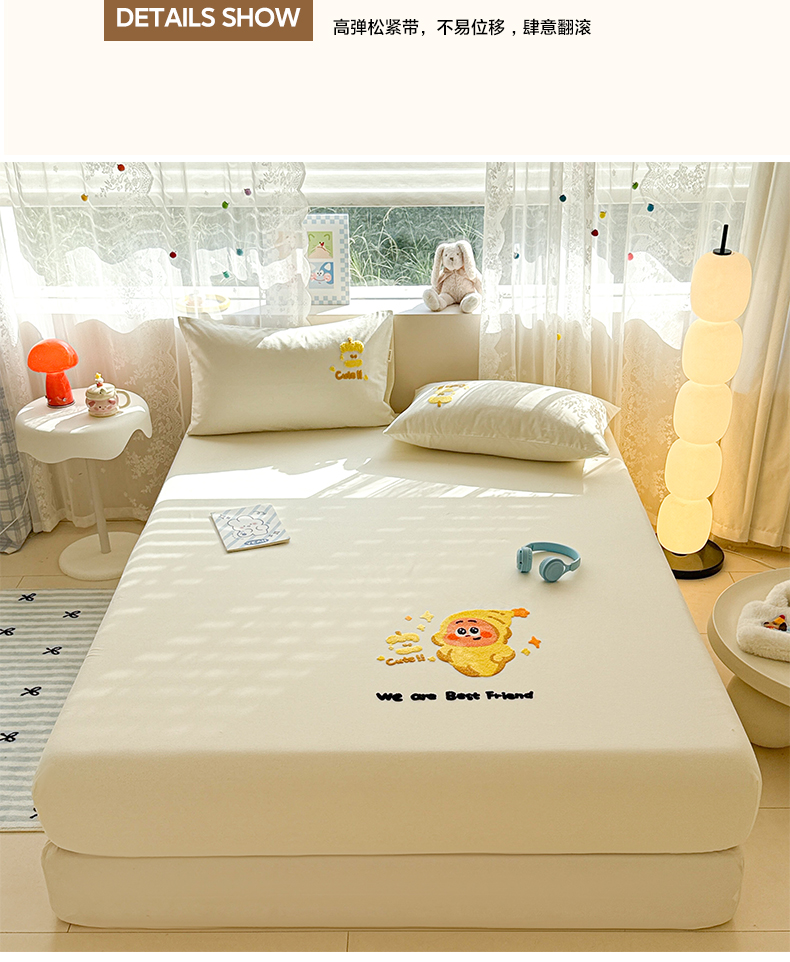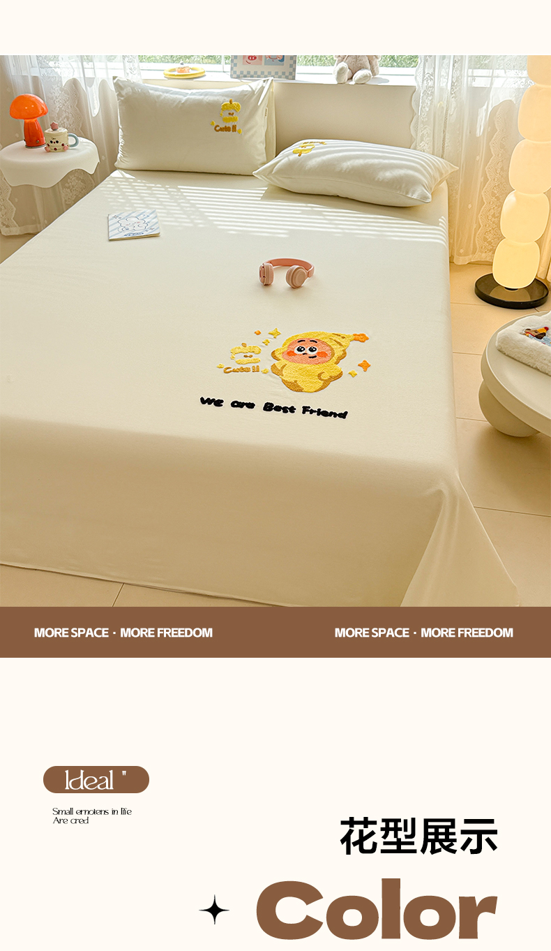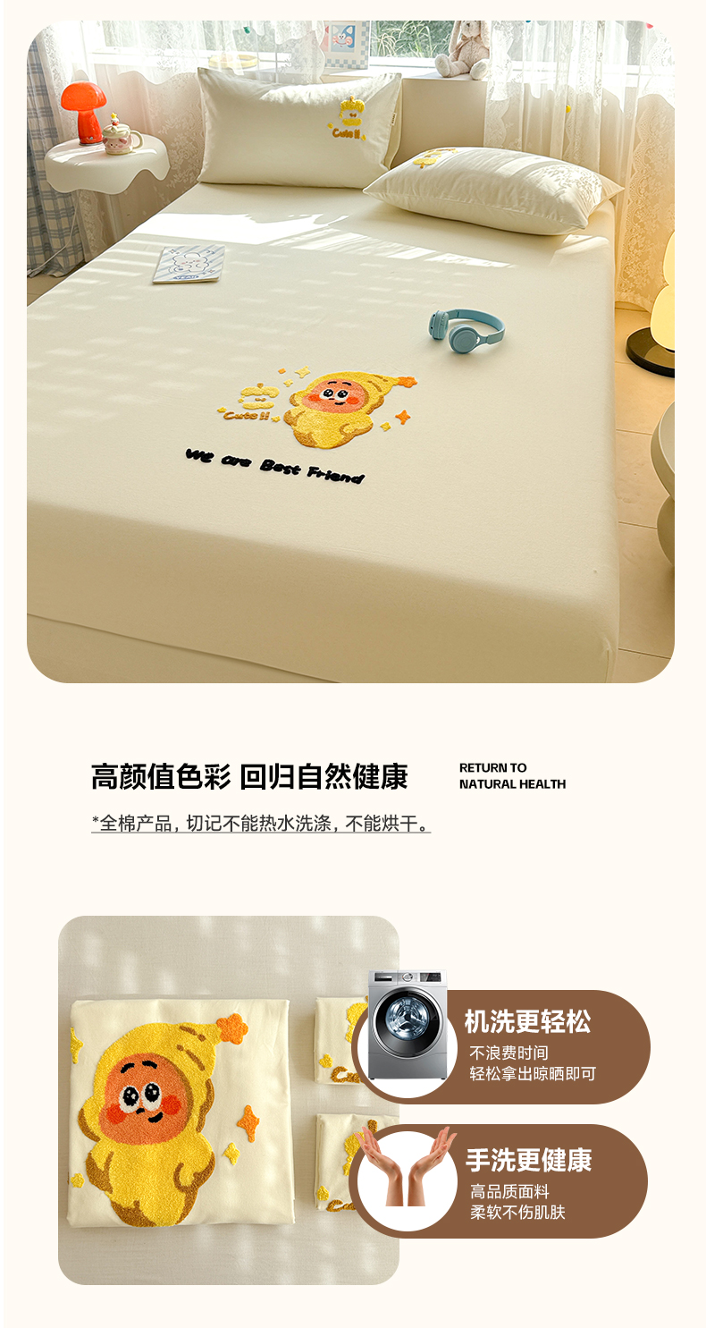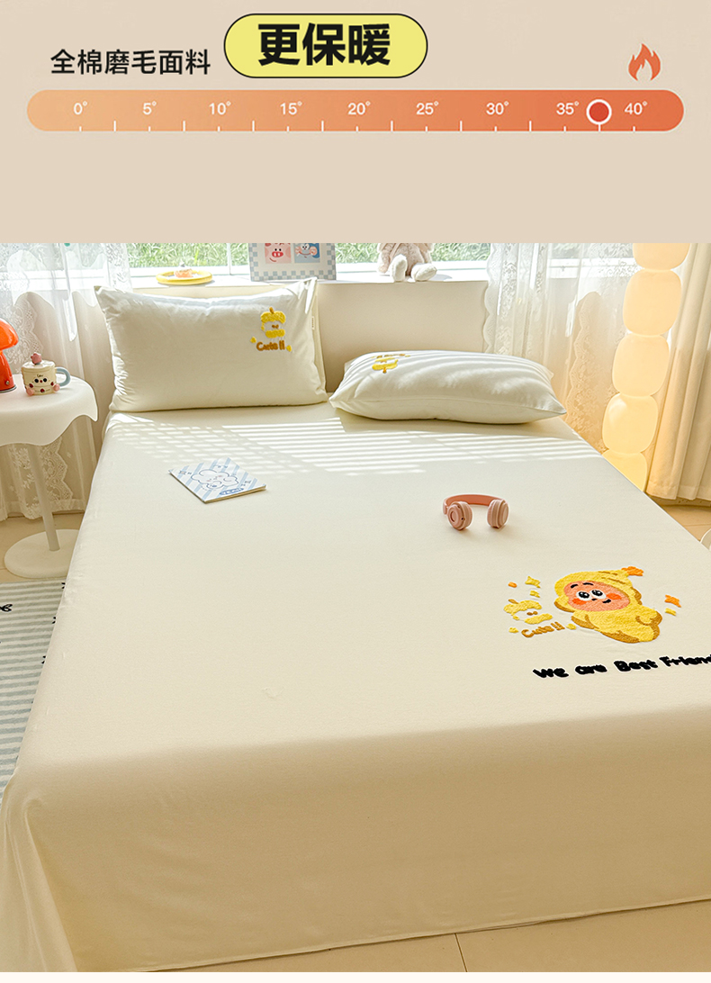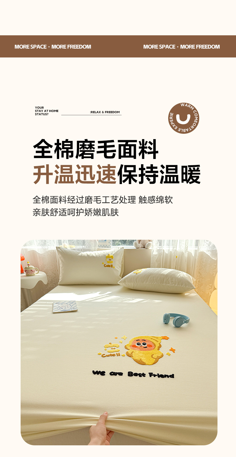 当前位置: 91家纺网 > 商品网购 > 床品套件 > 三件套 > 沐辰 2025新款A类全棉磨毛绣花单品床单床笠 星星人米白-床笠