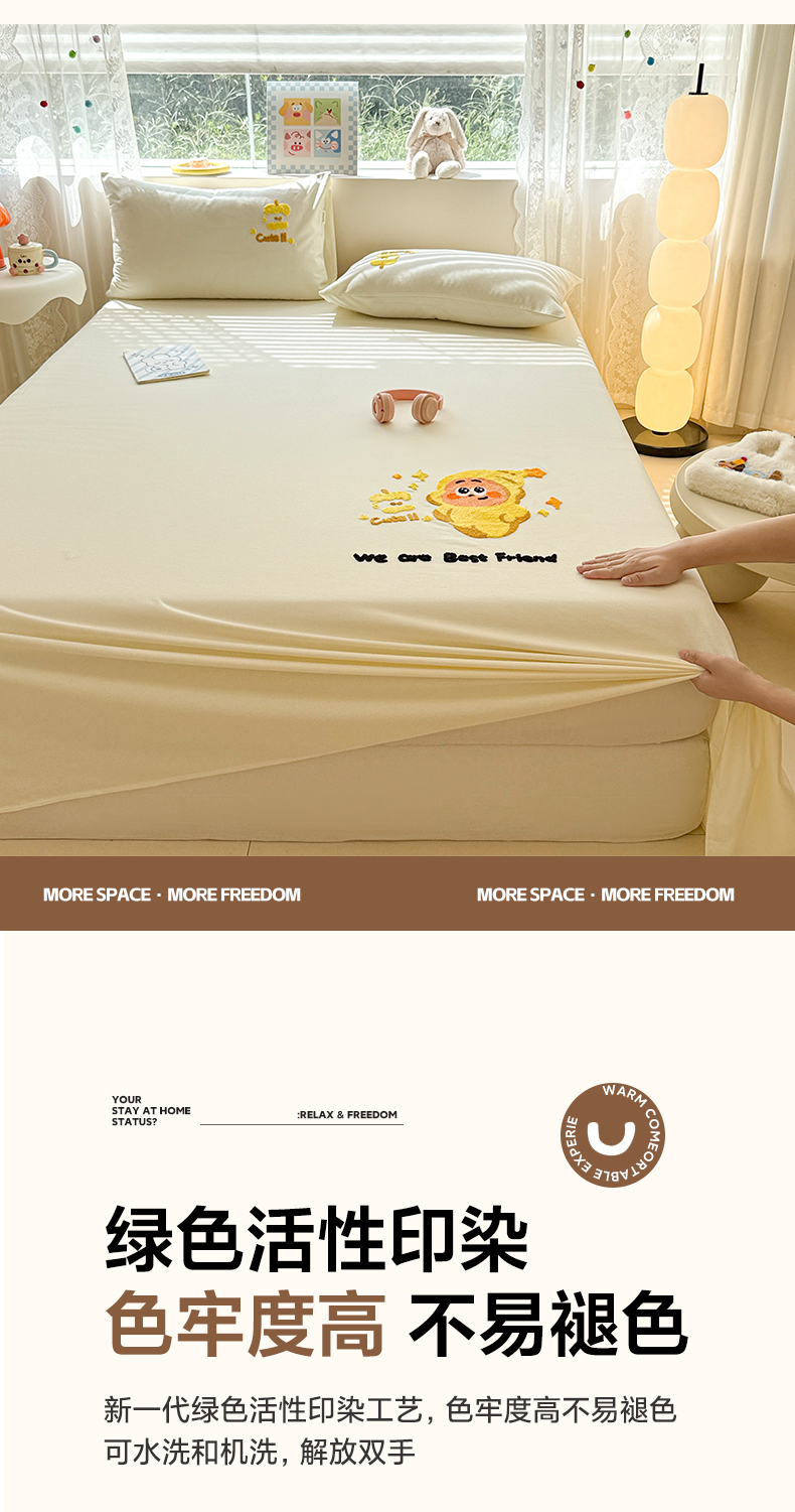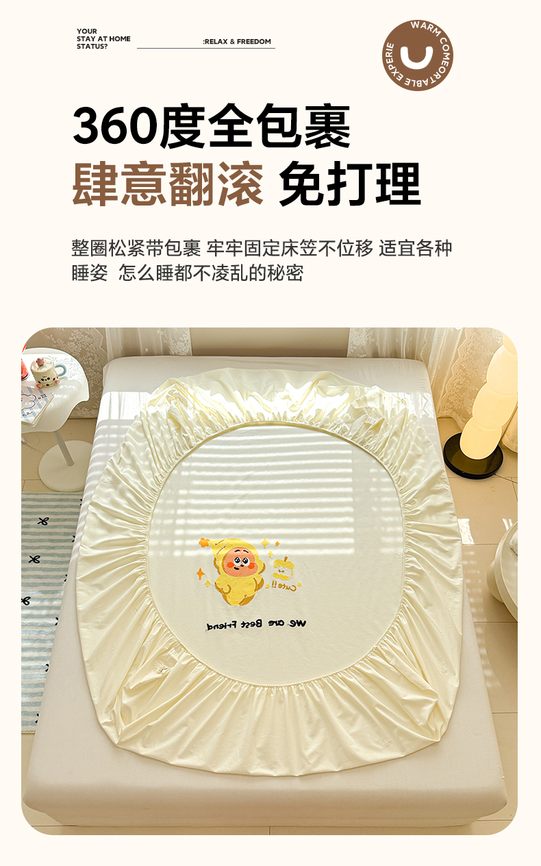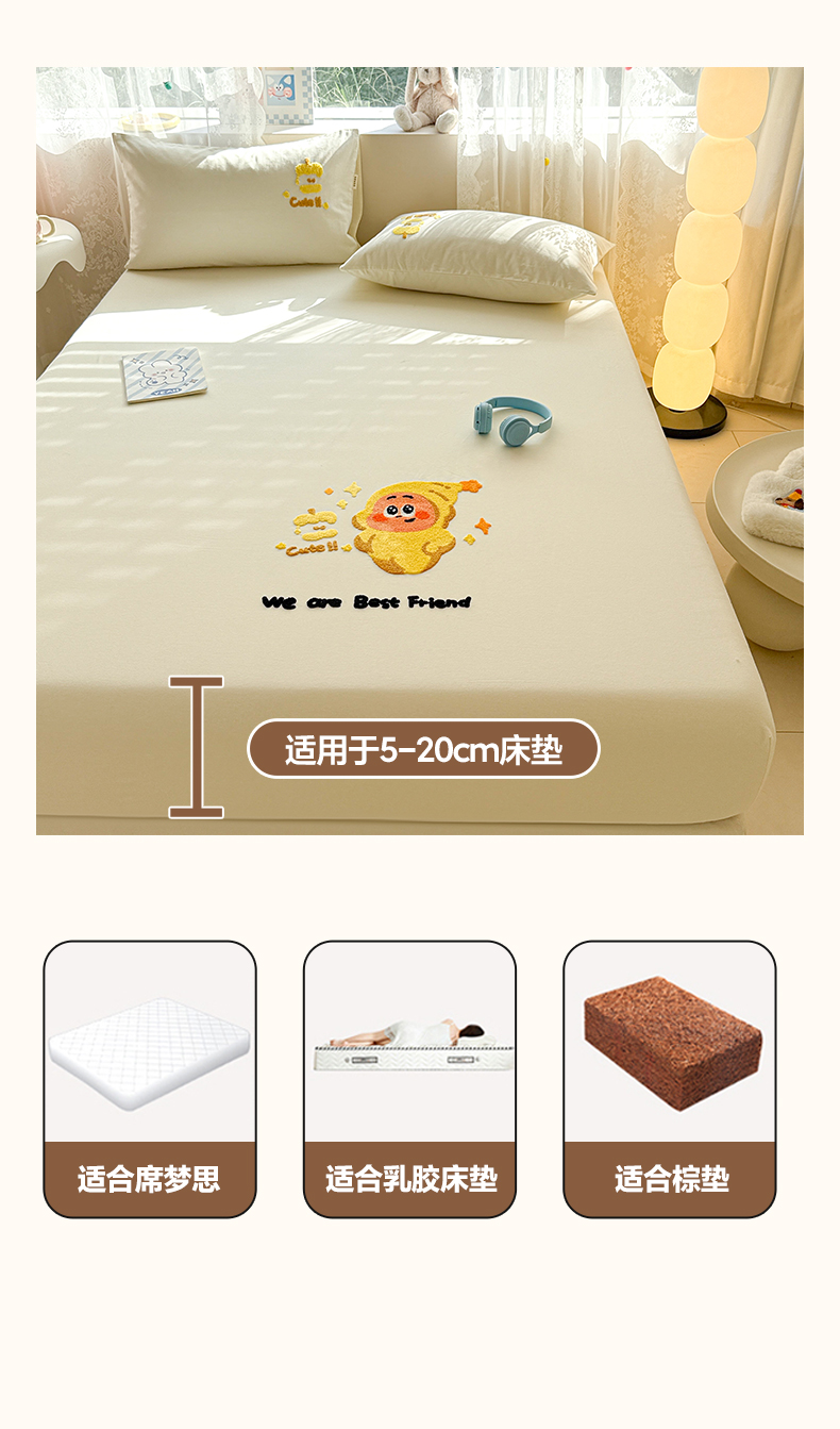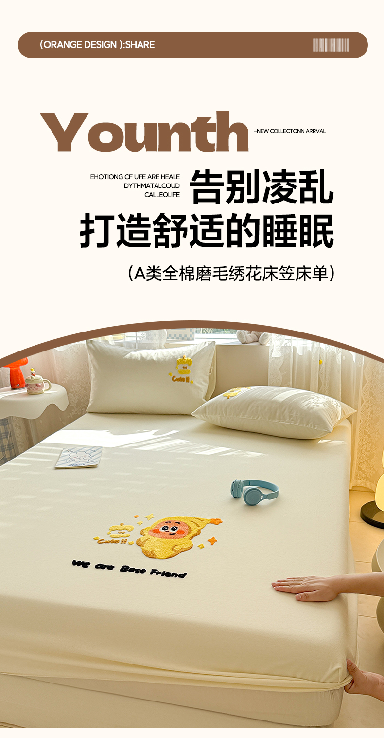 当前位置: 91家纺网 > 商品网购 > 床品套件 > 三件套 > 沐辰 2025新款A类全棉磨毛绣花单品床单床笠 星星人米白-床笠