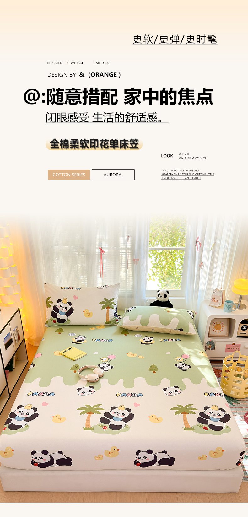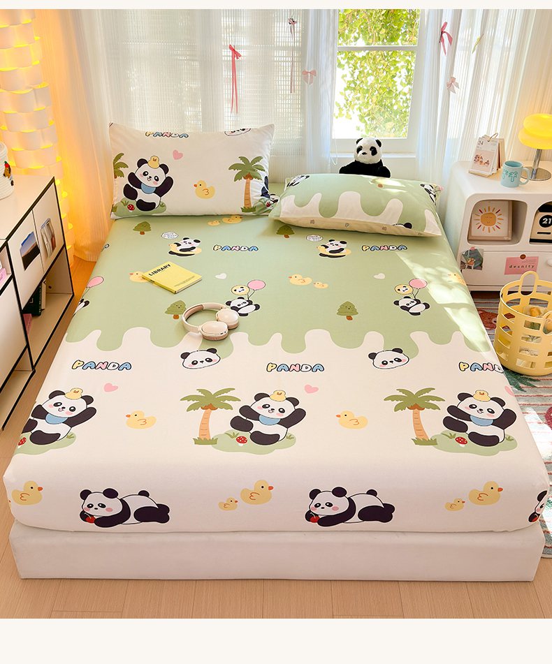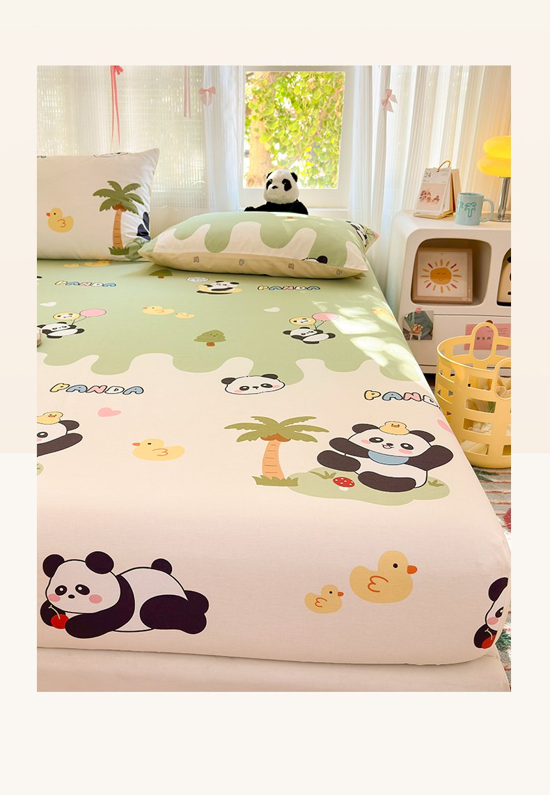 清雅福 2025新款全棉柔软印花系列单床笠 熊猫鸭鸭乐-绿