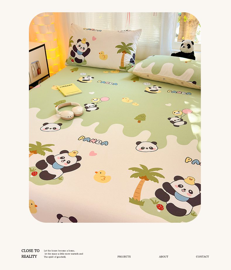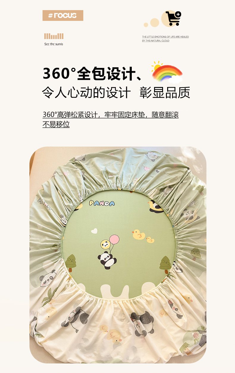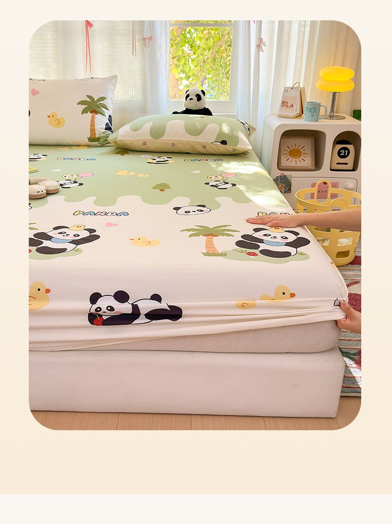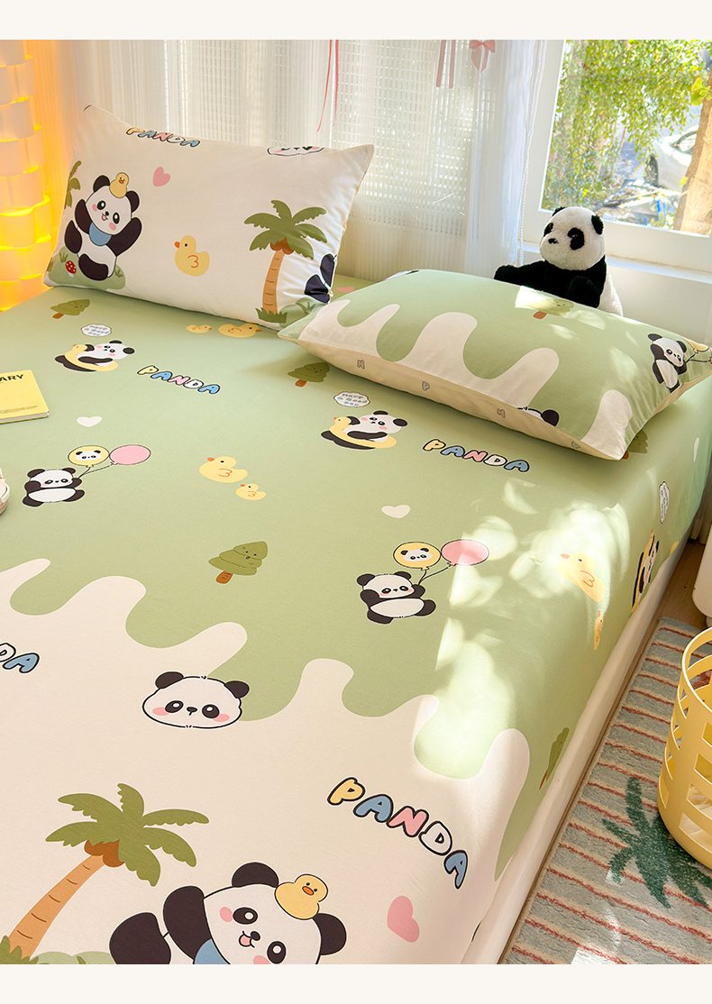 清雅福 2025新款全棉柔软印花系列单床笠 熊猫鸭鸭乐-绿