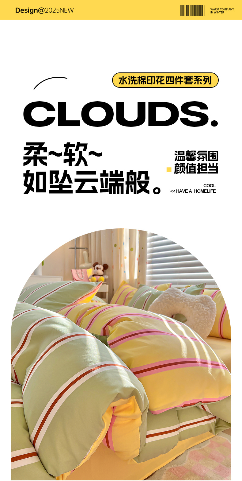 当前位置: 91家纺网 > 商品网购 > 床品套件 > 四件套 > 水洗棉四件套 > 木子家纺 2026新款水洗棉印花四件套--仲夏系列 不焦绿