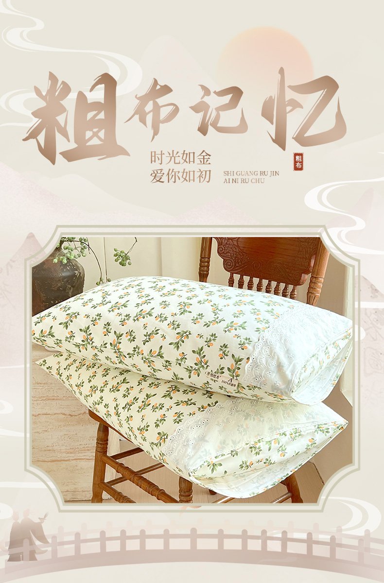 春皖家纺 2026春夏新品老粗布花边款单枕套 枕套单件 花边-翠林音